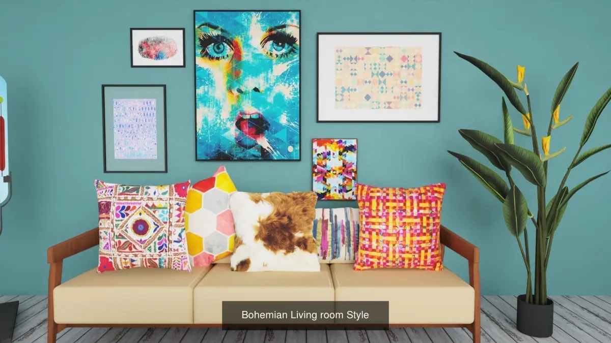 Bohemian Interior Design Style is defined by a lack of structure, opting instead for carefree layers of pattern, texture, and color. Boho style is not styled for any other person’s enjoyment but your own.This Bohemian Living room Style is bright, loud, busy, but also chic at the same time.Most of the furniture are collective pieces. We can notice in this Boho livin room: