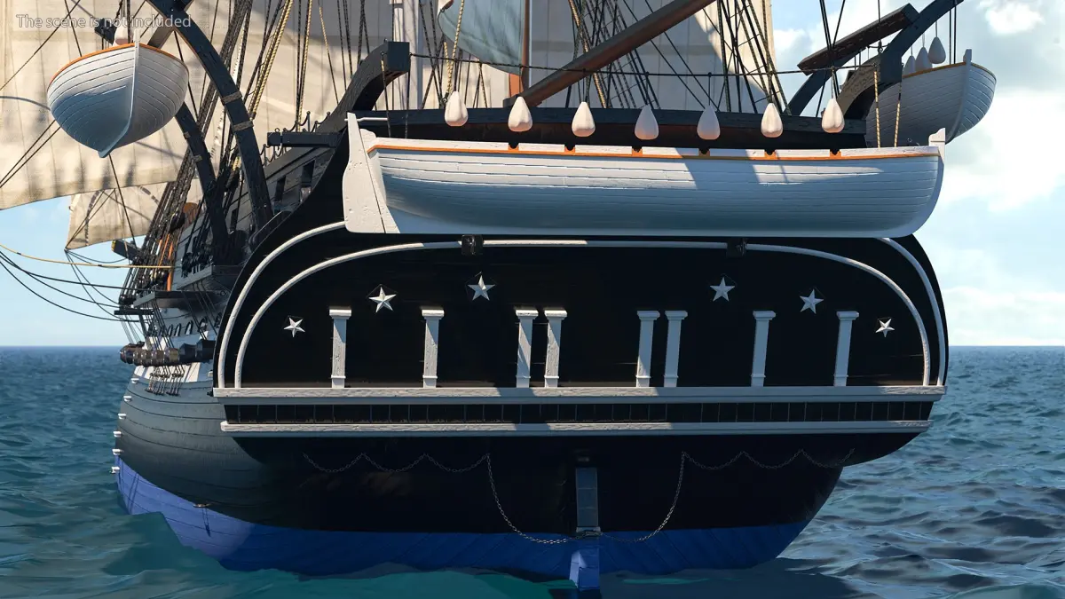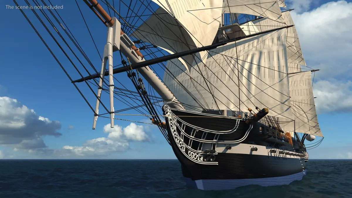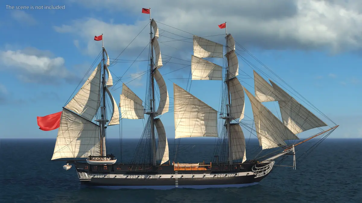 Three Masted Heavy Frigate Raised Sails is a three-dimensional model of a navy three-masted heavy frigate.
