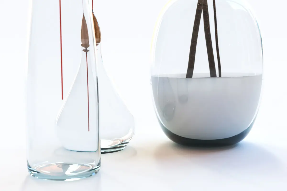 This model includes the three vase with different shapes. Delicate branches were placed in one of them.