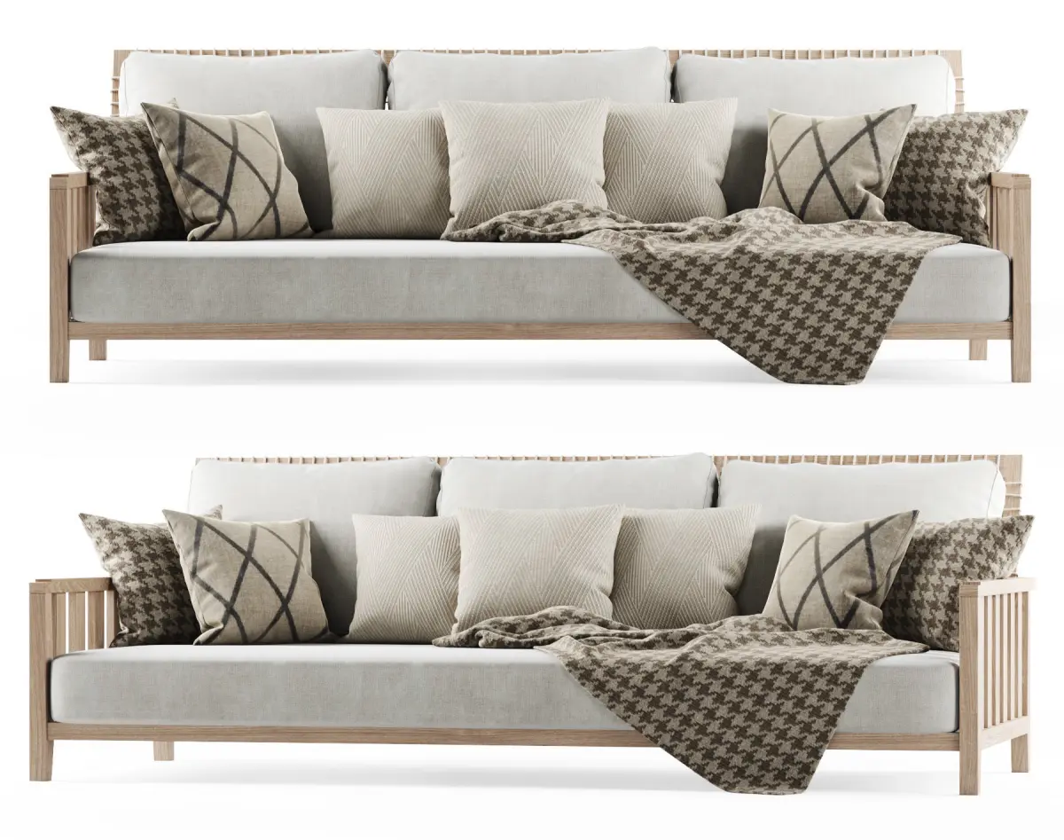 HomeCatalogThree-seater garden sofa with plaid 3D model