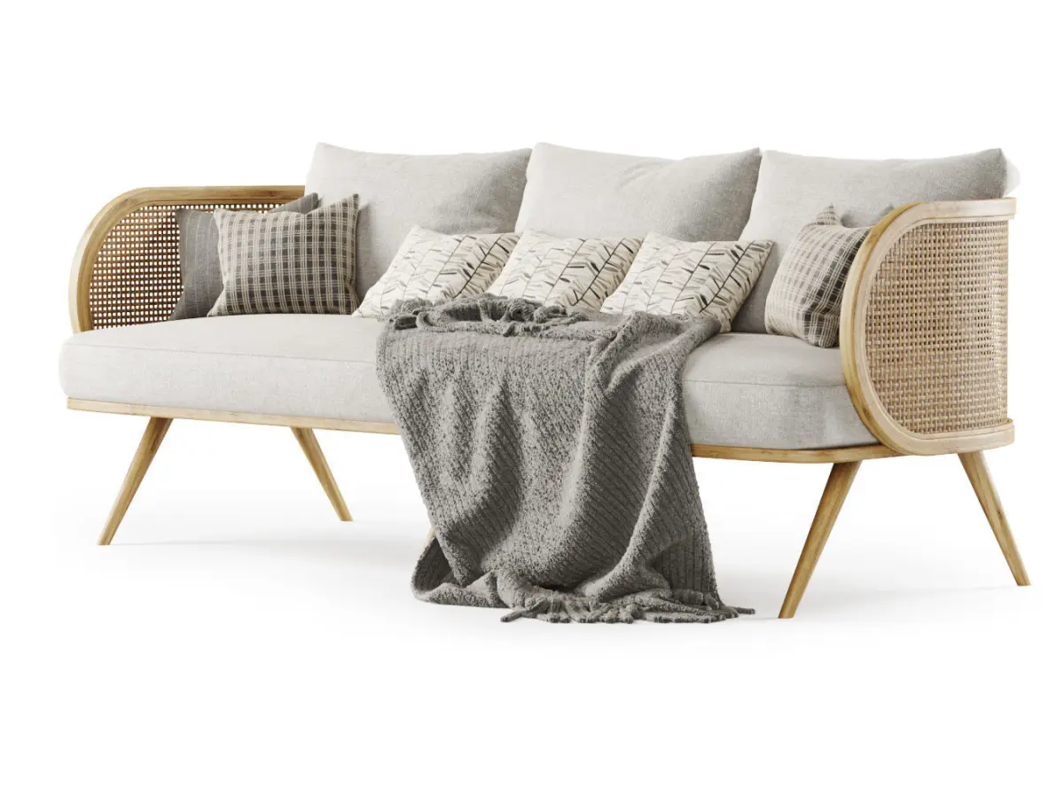 Three-seater wooden rattan sofa CV23 3D model