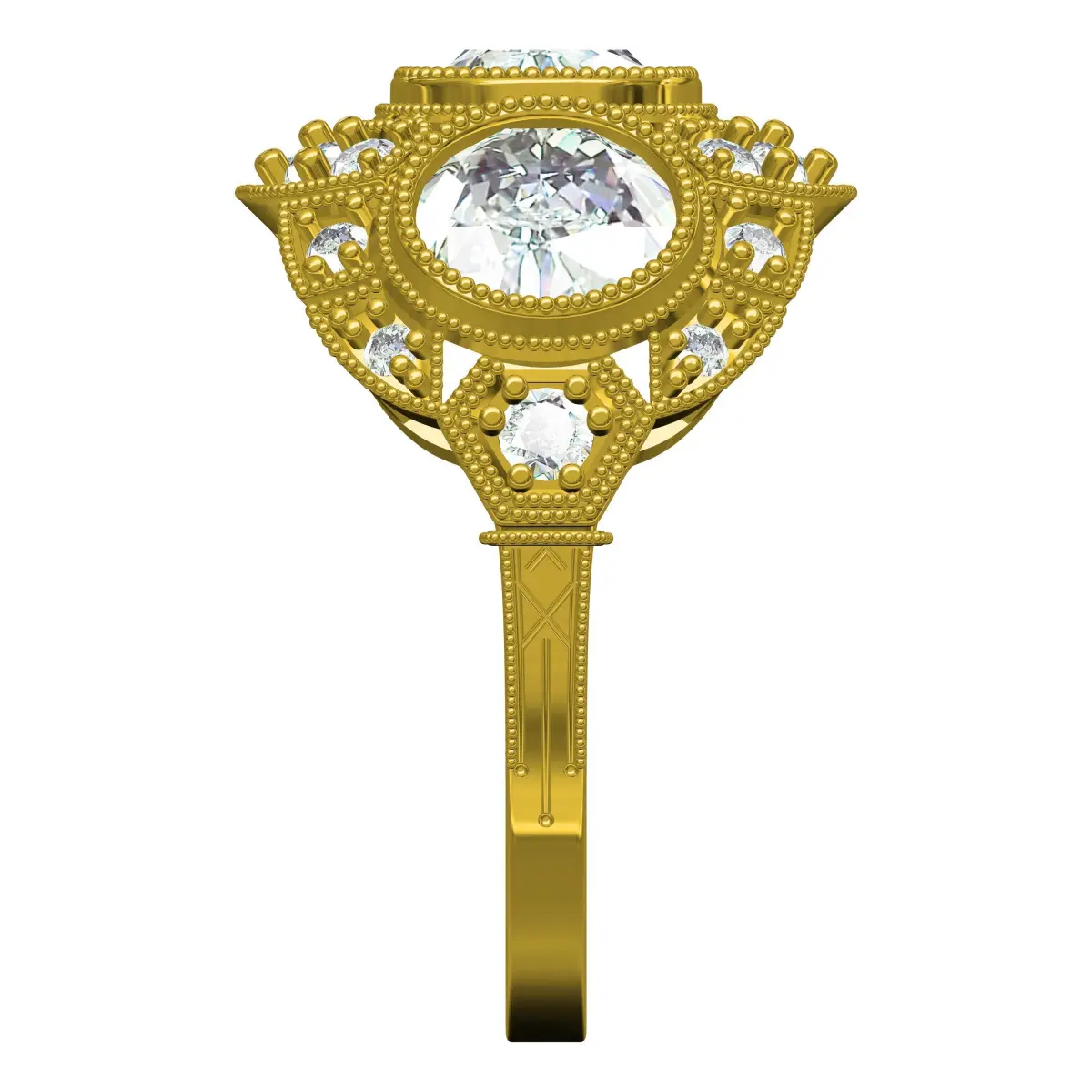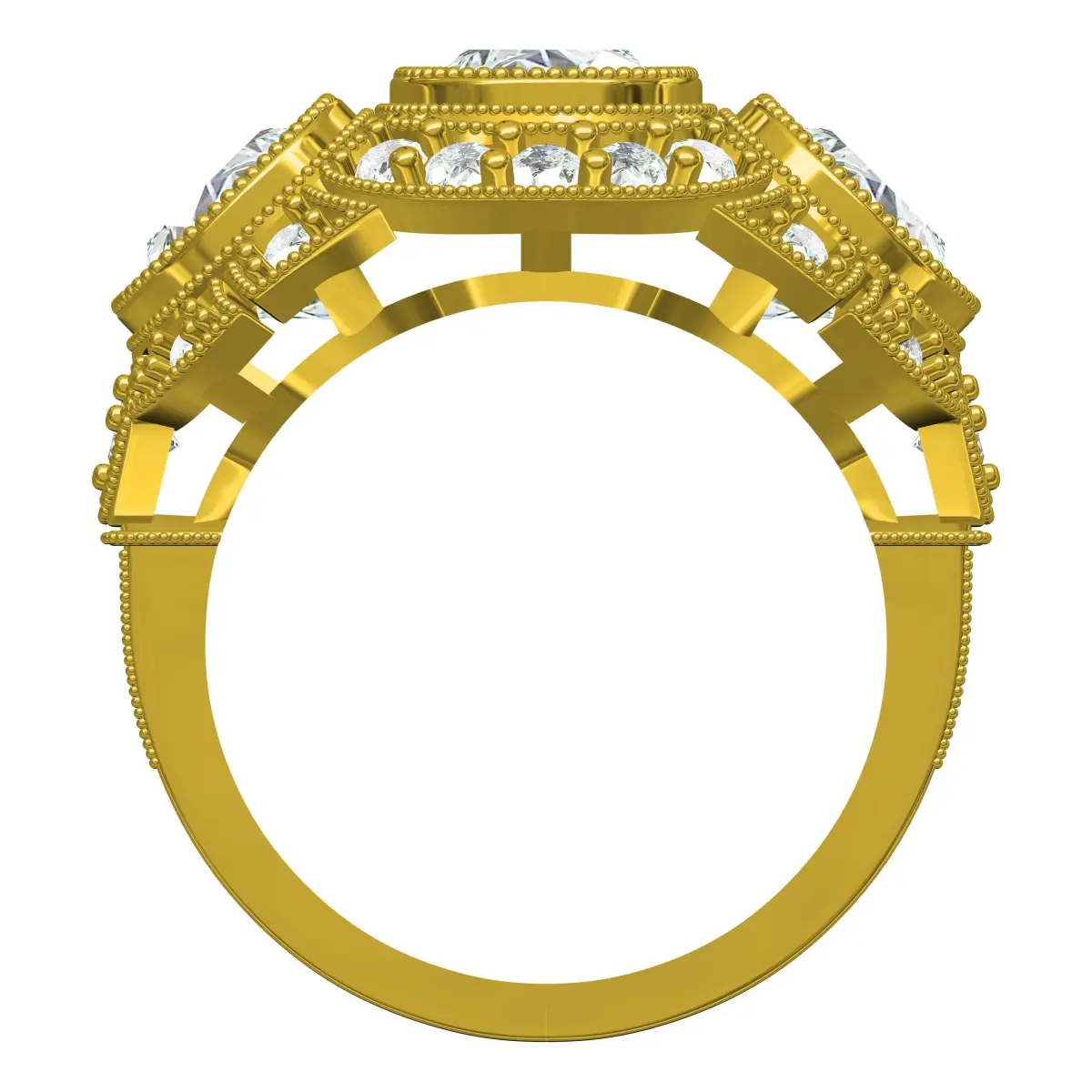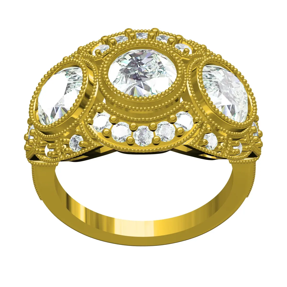 Three Stone Diamond Halo Art Deco Ring