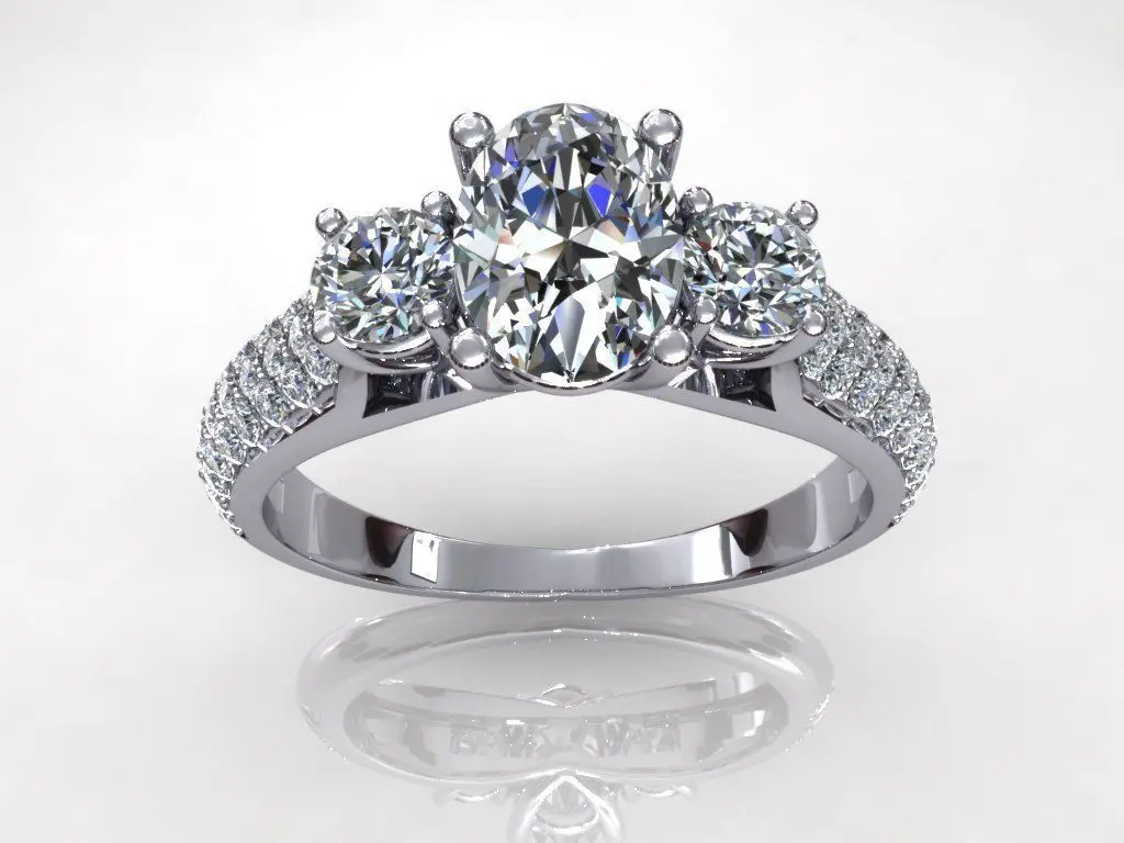 Home Catalog Three Stone Halo Ring G2 3D print model
