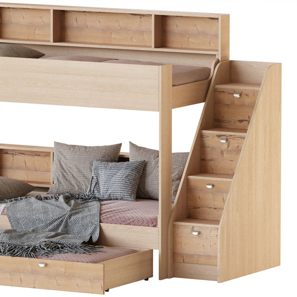 Name: Three-tier bed Golden Kids 10Type: modelFormat: 3Ds Max 2016Export: FBX, OBJRender: Corona (10)Polys: 582624Verts: 583588Units: MillimetersDimension: 2430.0 x 1876.93 x 1840.13Description: