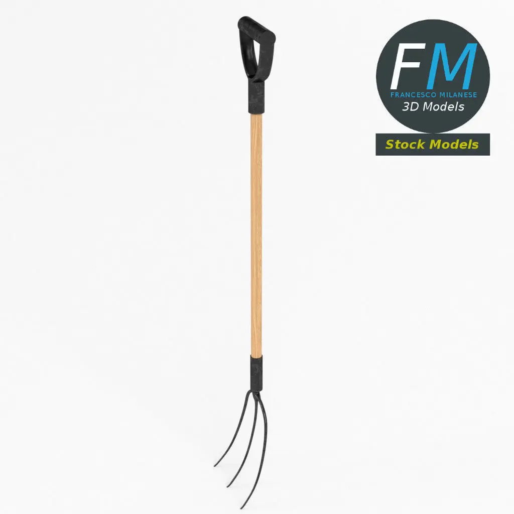 Three-tined pitchfork 3D Model. Production-ready 3D Model, with PBR materials, textures, non overlapping UV Layout map provided in the package.