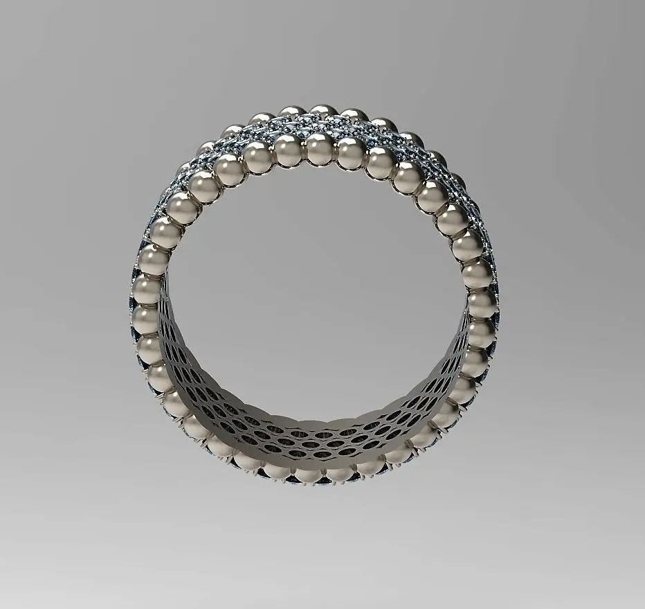 Three way eternal ring with milgriff rings on each side.Each stone measure is 1 mm, it is prepared to the shrinkage due to print and cast.Each besel is preapred to obtain the maximun light posible, so the stones can shine through.Very light weight