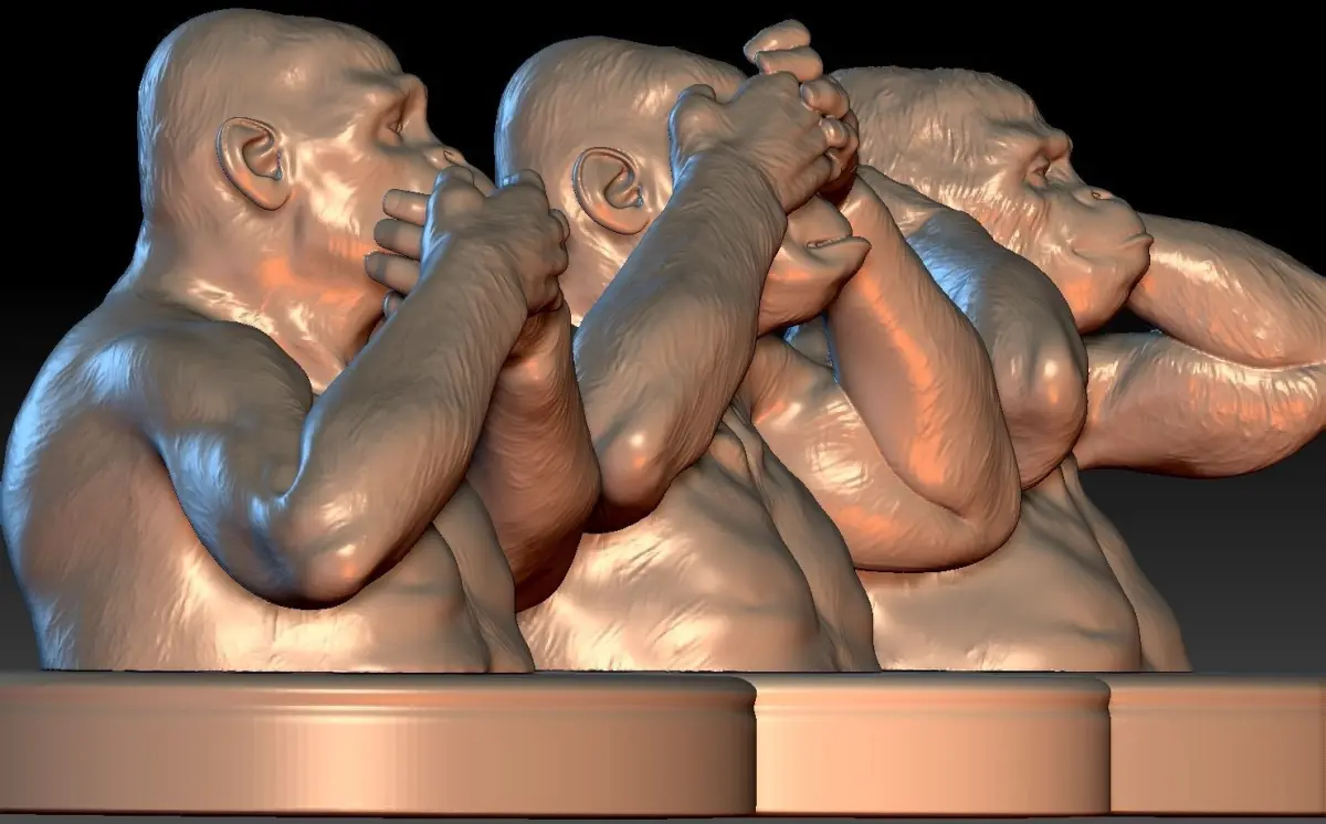 Zbrush Models. Three Wise Monkeys or Three mystic apes, as Lafcardio Hearn wrote. Outside Japan the monkeys' names are sometimes given as Mizaru, Mikazaru and Mazaru, as the last two names were corrupted from the Japanese originals.Personal use, non comercial.