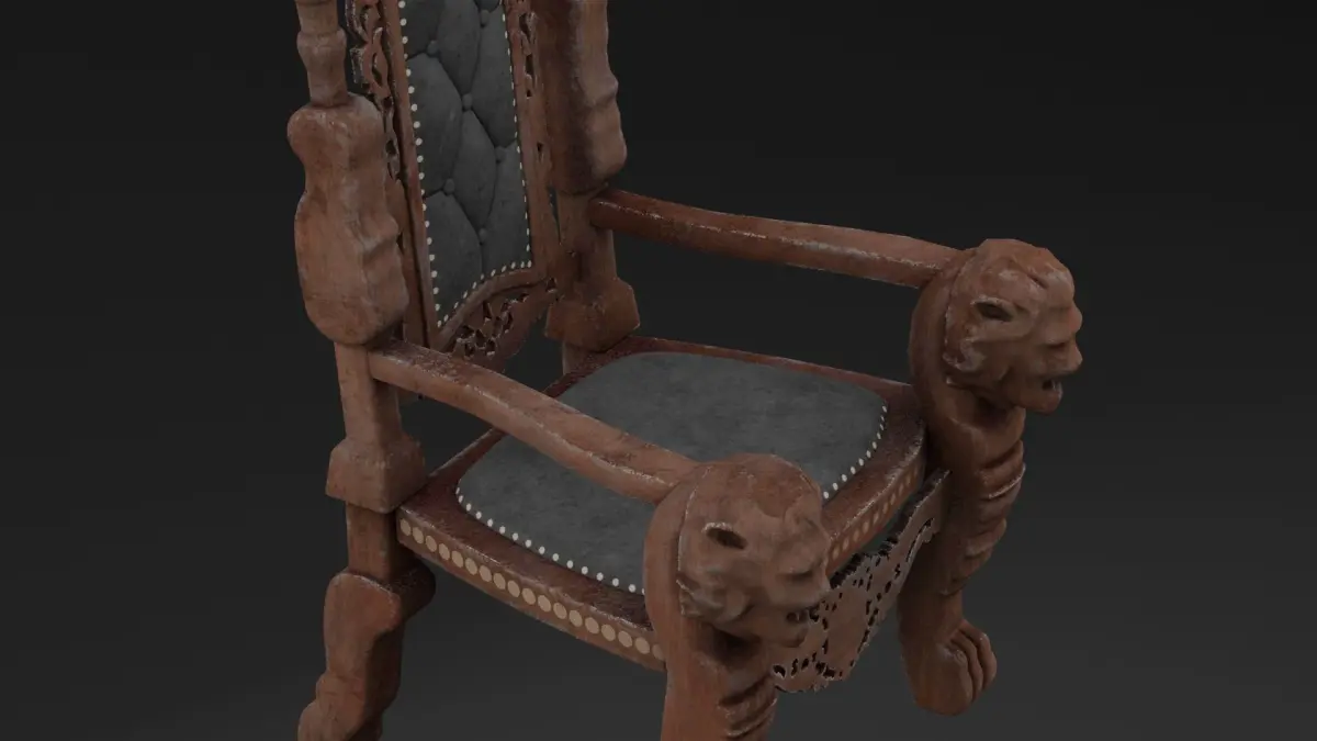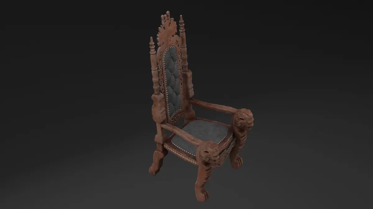 This 3D model showcases a Throne Chair, exuding grandeur and regality. The chair features an intricately carved wooden frame with ornate patterns and high backrest, designed to signify power and prestige. Upholstered with luxurious fabric or leather, it includes detailed embellishments such as gilded accents, engraved crests, or gemstone inlays. Available in BLEND, OBJ, and DUF formats, this high-poly model with realistic textures is perfect for fantasy, royal, or historical-themed projects.