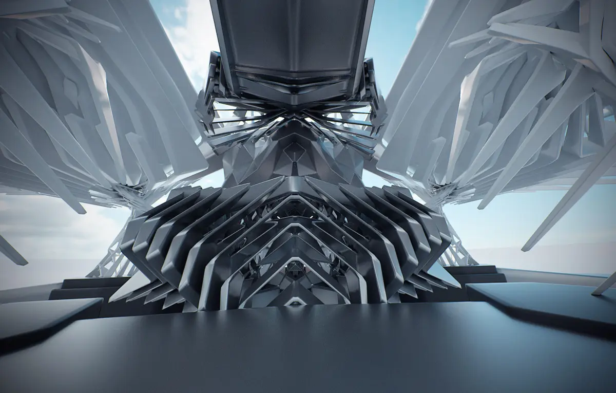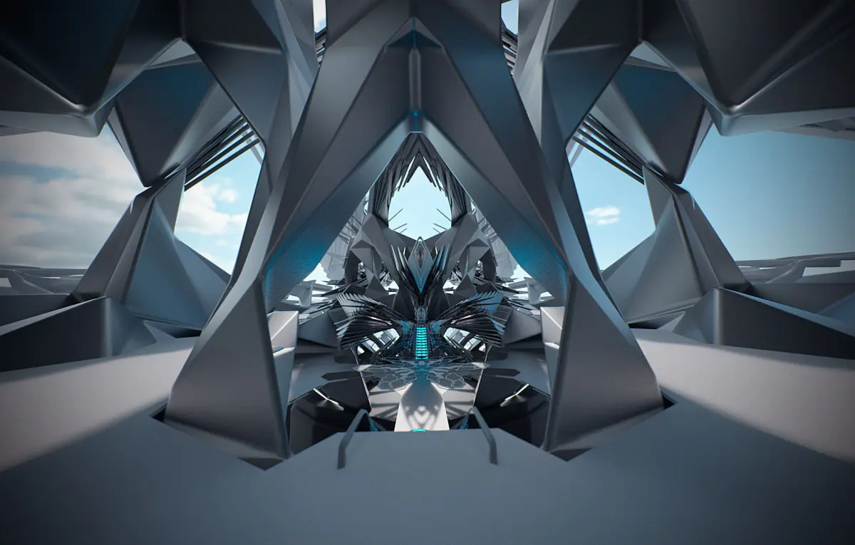 Sci-fi concept of a throne room environment, characteristic cyberspace architectural design in futuristic renaissance style.