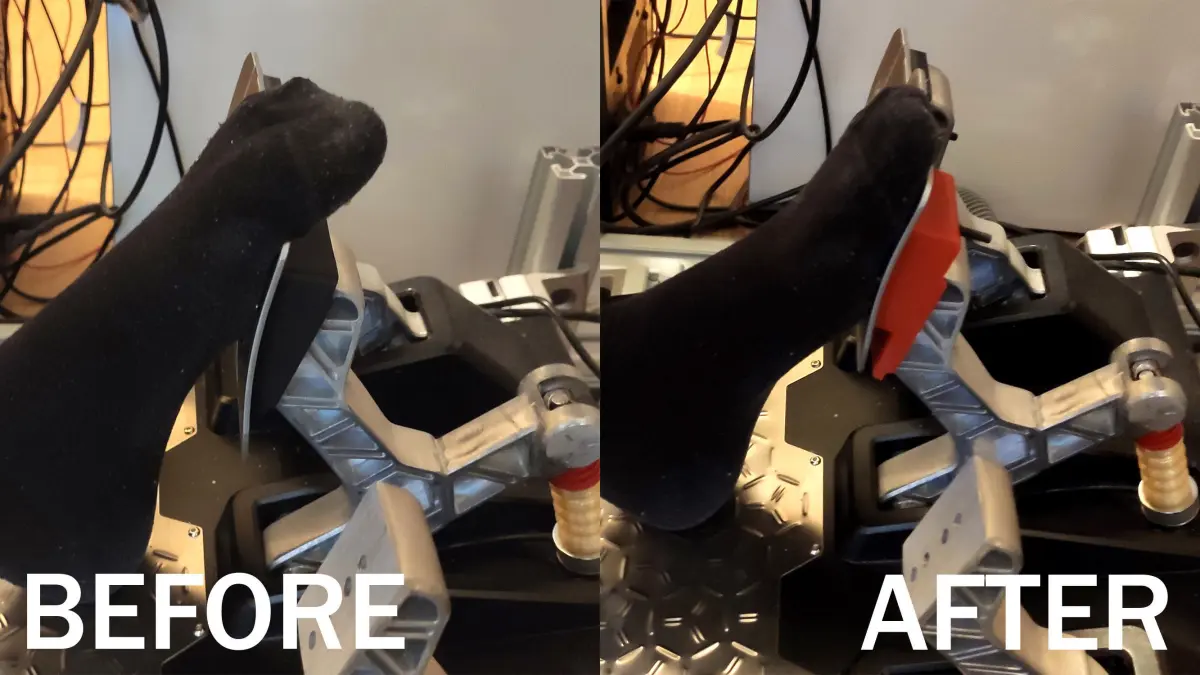 3D Printable mod to increase pedal face heights of tlcm pedals from thrustmasterThis part is designed to be used in place of the original plastic pedal face angle supports and increase the pedal face height by approximately 25mm (1 Inch). It increases the comfort of the pedals by supporting the feet better, similar to higher end pedal sets from brands like Heusinkveld and Asetek.This replacement part maintains the same angle as the Vertical Position angle support piece included with the pedals.