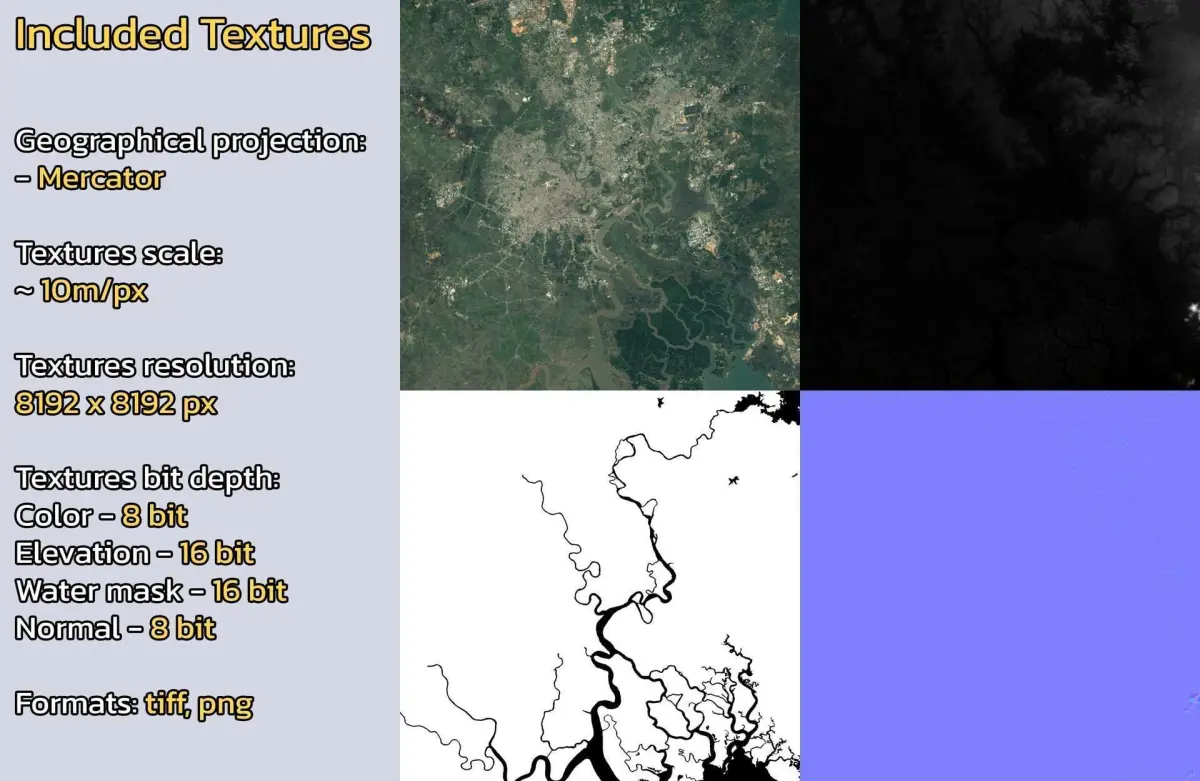 - Textures resolution: ~10m/px