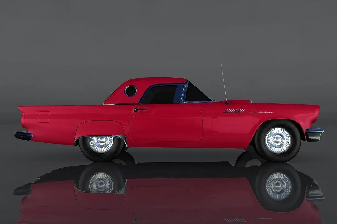 1956 Thunderbird low-poly 3d model ready for virtual reality (vr), augmented reality (ar), games and other real-time apps.