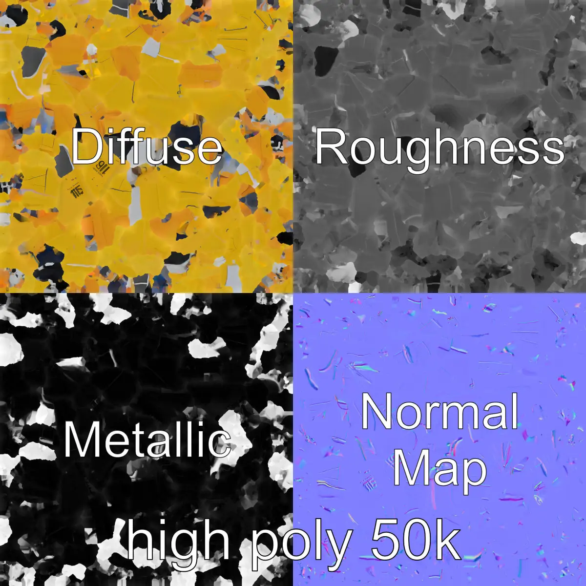 The model's textures are PBR, Diffuse, NormalMap, and reflection/roughness/metallic, which are suitable for any modern rendering engine. All models are accurately unwrapped and have no overlapping UVs.