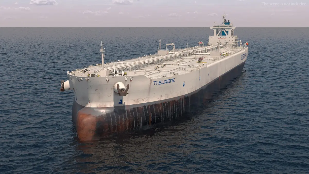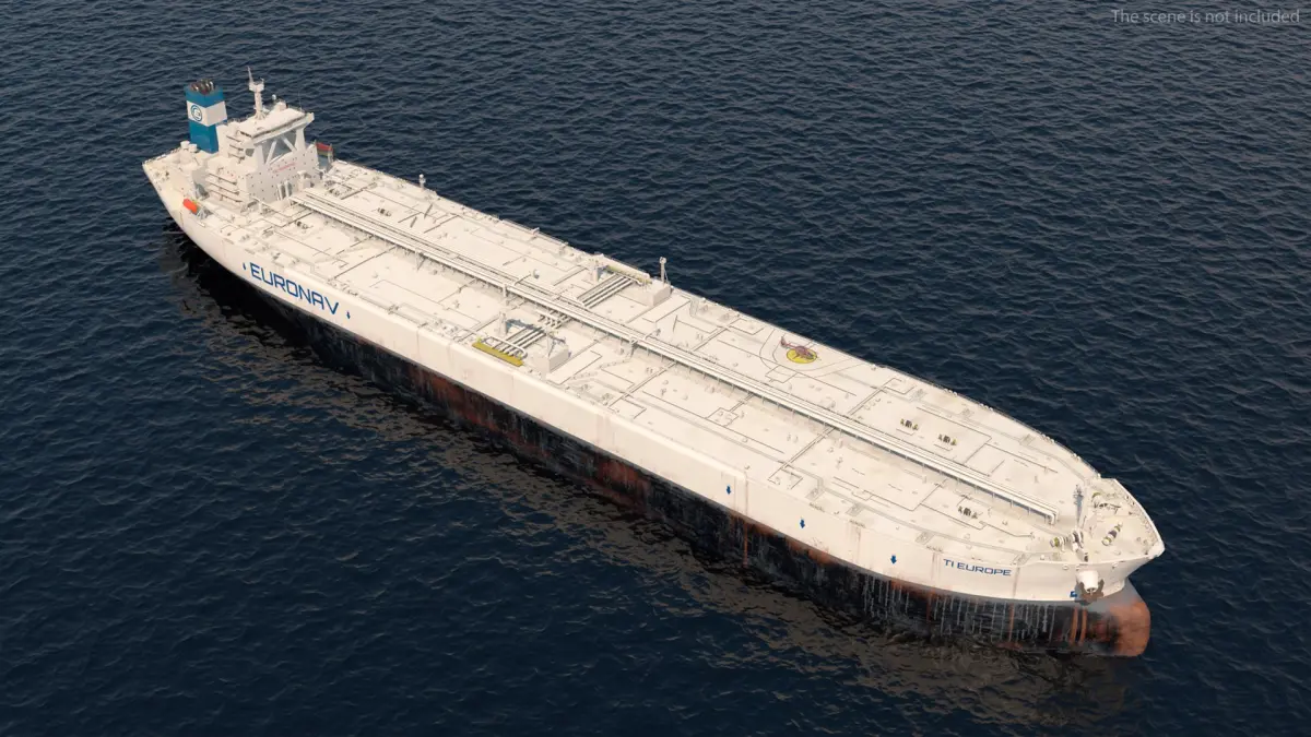 TI Europe Class Supertanker with Helicopter is a 3d model of type of very large crude carrier (VLCC) built by the South Korean shipbuilding company Samsung Heavy Industries for the leading oil tanker operator Euronav.