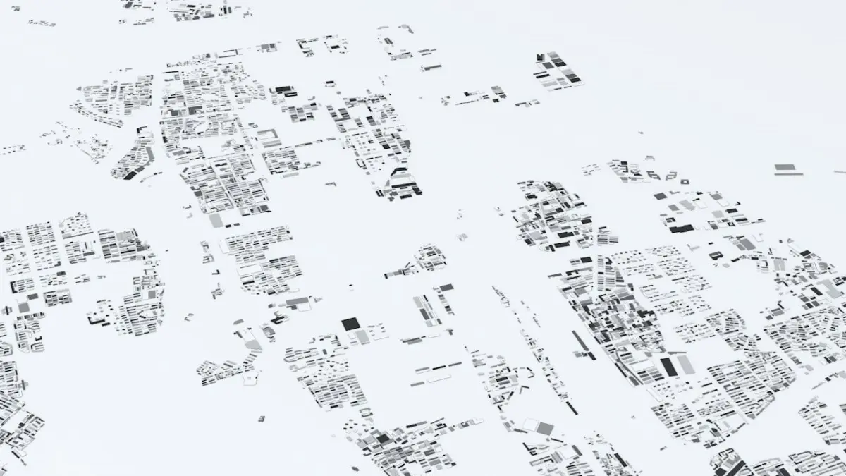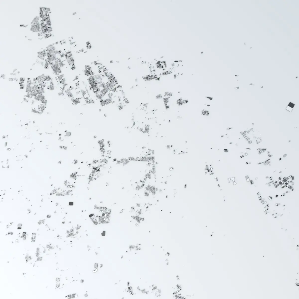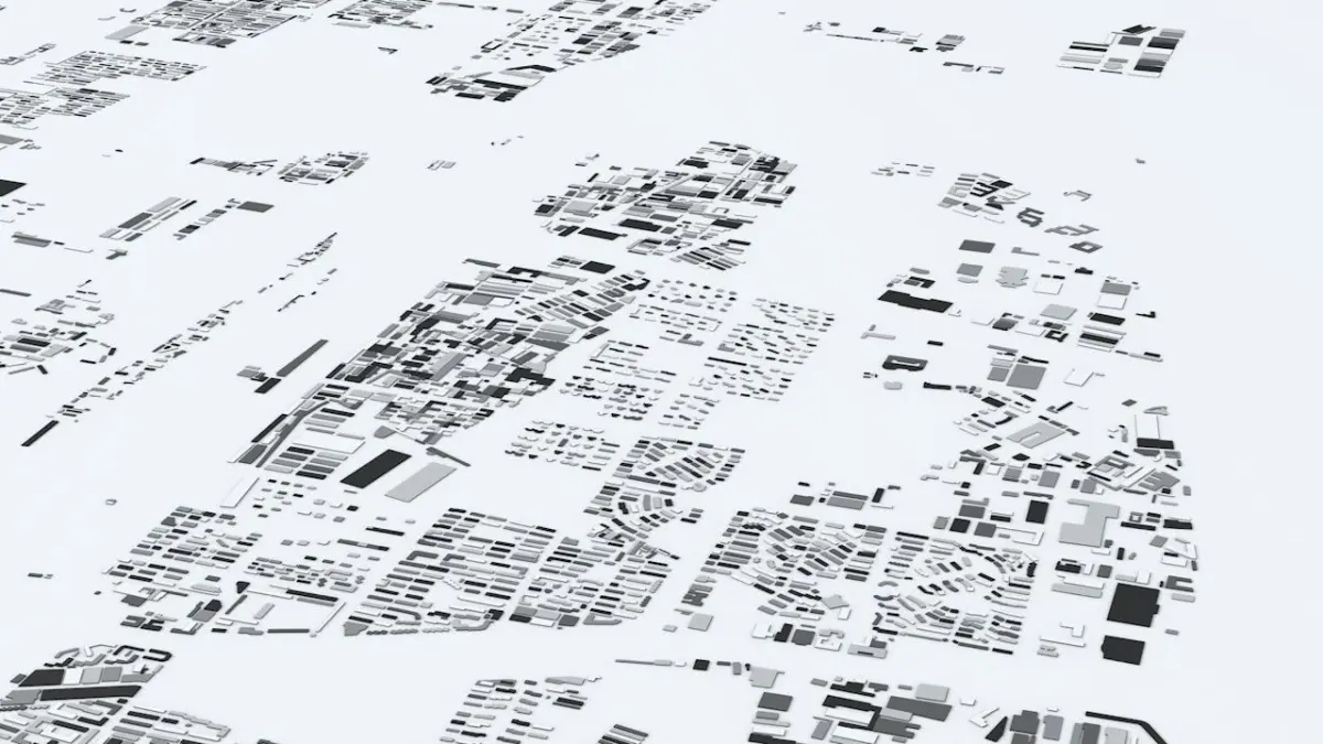 - the model is positioned on a flat surface (all buildings are on the “floor” - no elevation data included)