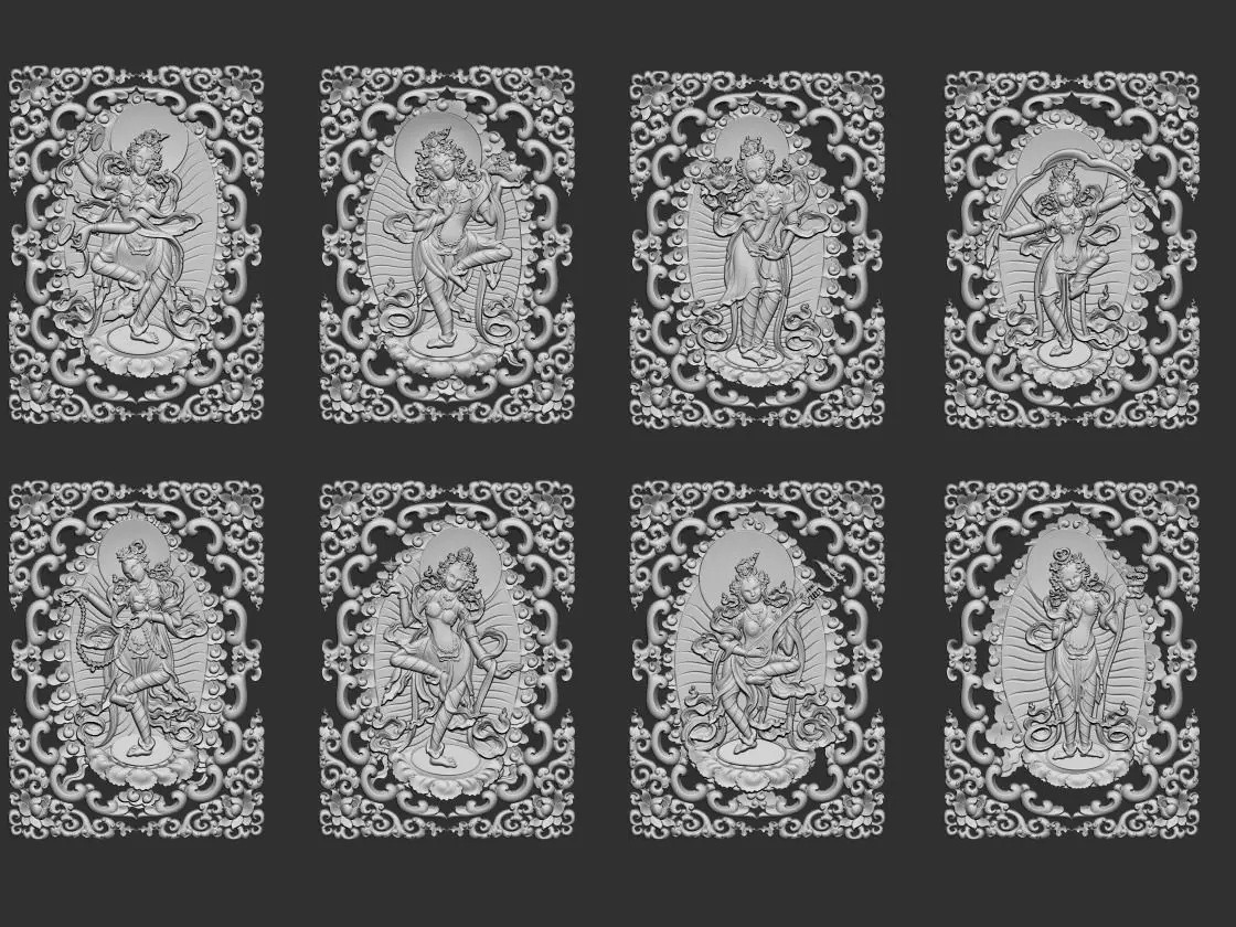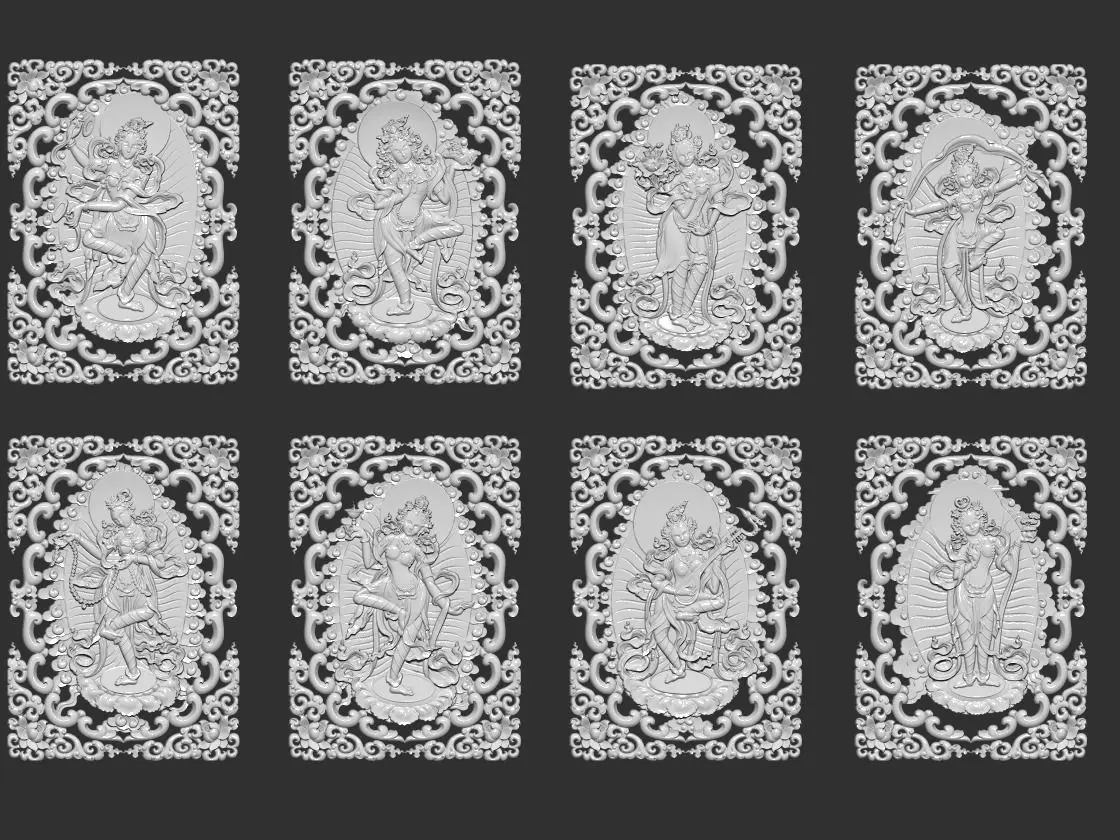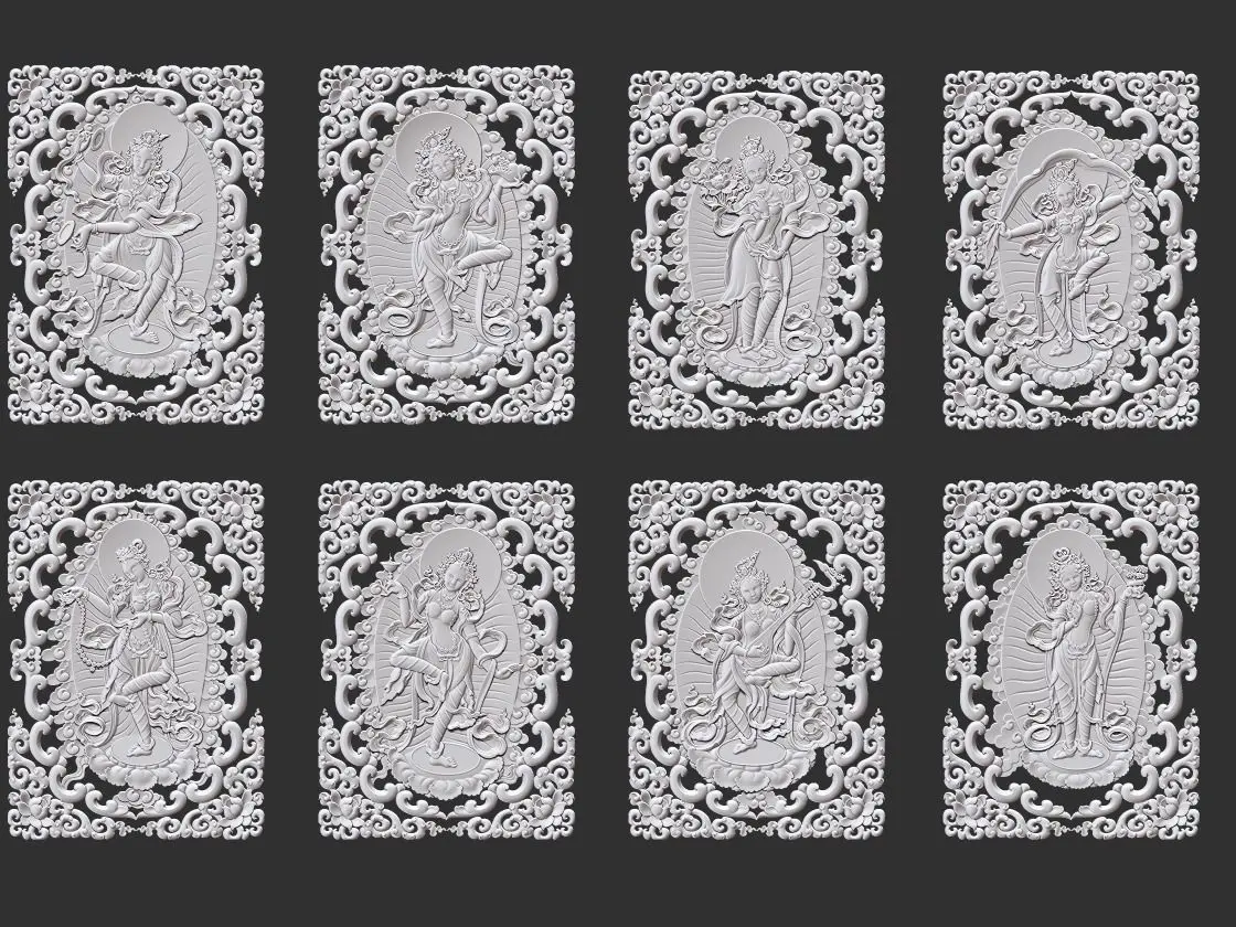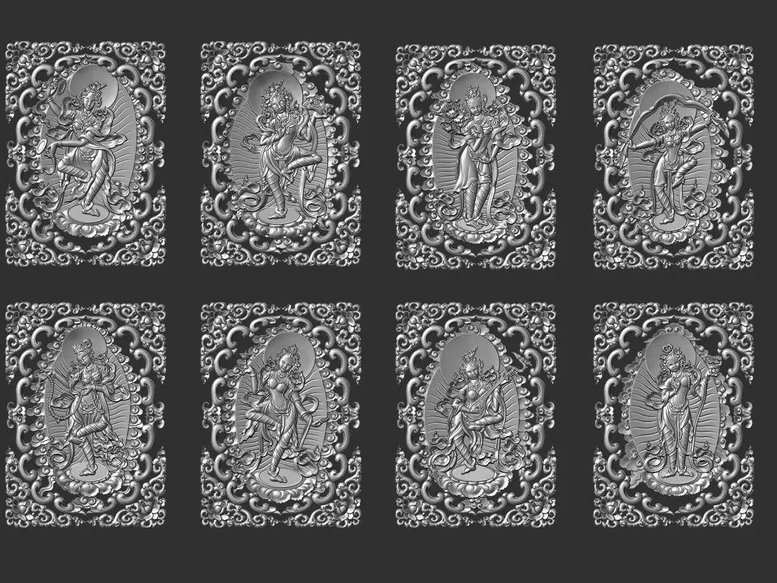 3d model of bas-relief of Tibetan fairies 16 pieces for CNC Router Carving or 3d printer.Highpoly 3d model.OBJ,STL format.