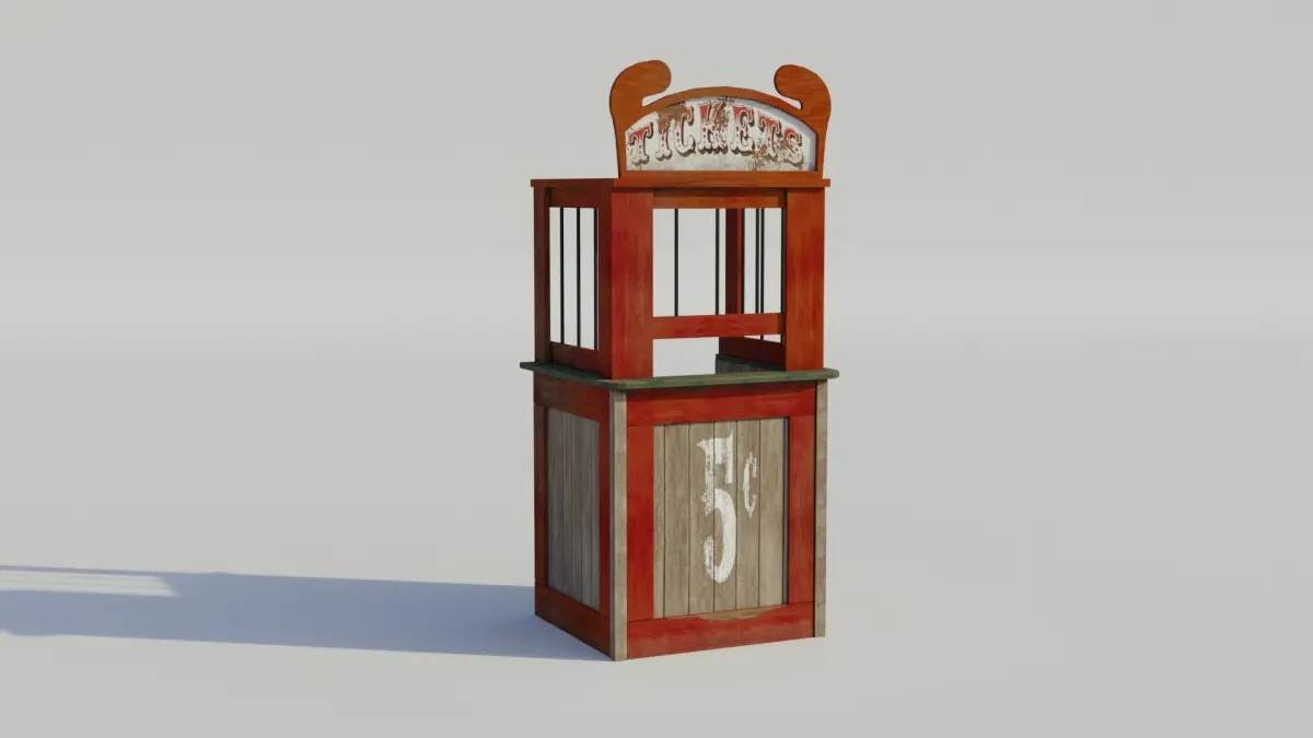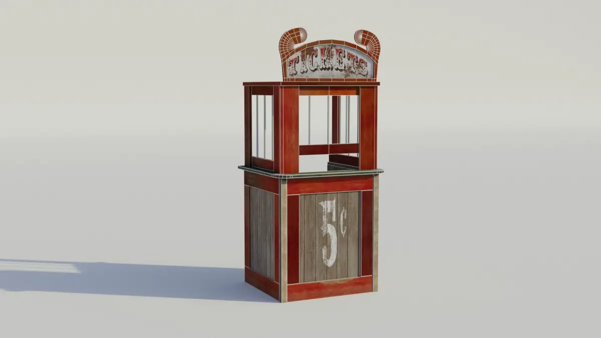 This low poly vintage ticket booth is a single model. The ticket booth comes with 4K PBR textuers (diffuse, roughness, and normal maps)