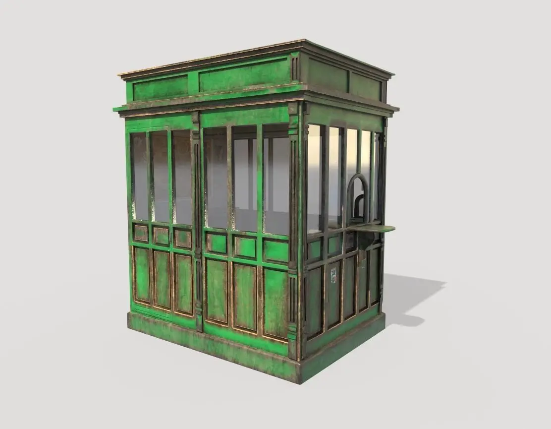 Model of old ticket office . Model is very realistic.It has 4 PBR material.Maps are diffuse-specular-glossiness-height and normal. Also, PBR Metallic-Roughness ( Basecolor-Metallic-Normal-Roughness-Height) workflow has been added. Model's textures has two sizes; 4096x4096-2048x2048. All maps are PNG formats .