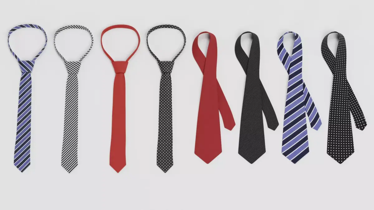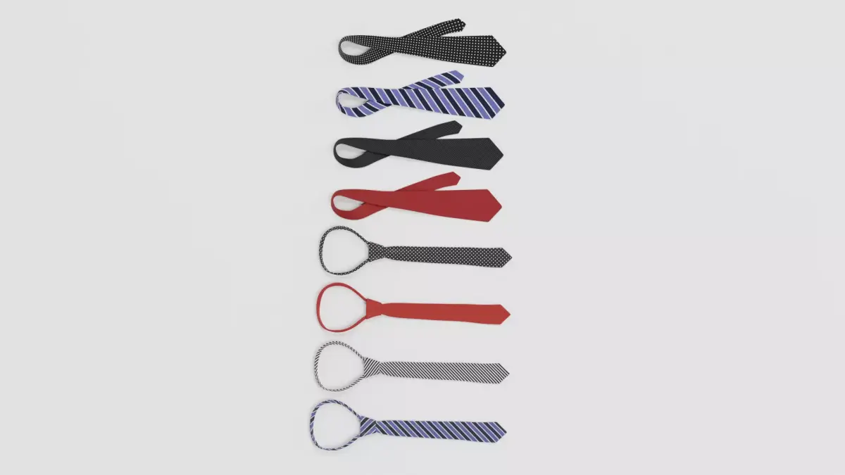 A comprehensive eight-piece set combining both tied and untied tie variants. The collection includes various fabric patterns in two configurations, delivering a fully versatile wardrobe asset pack for fashion design, character creation, visual merchandising, and high-detail rendering. Each model features clean topology, refined textile shading, and a consistent photorealistic look.
