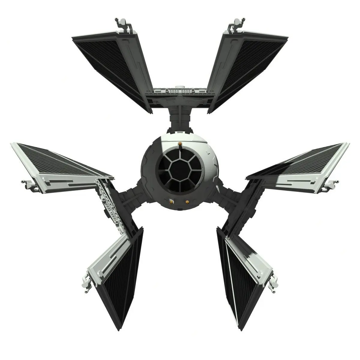A model of the TIE (Twin Ion Engines) Defender from the Star Wars univers. This starfighter is an imperial ship used by the Imperial Galactic Navy.