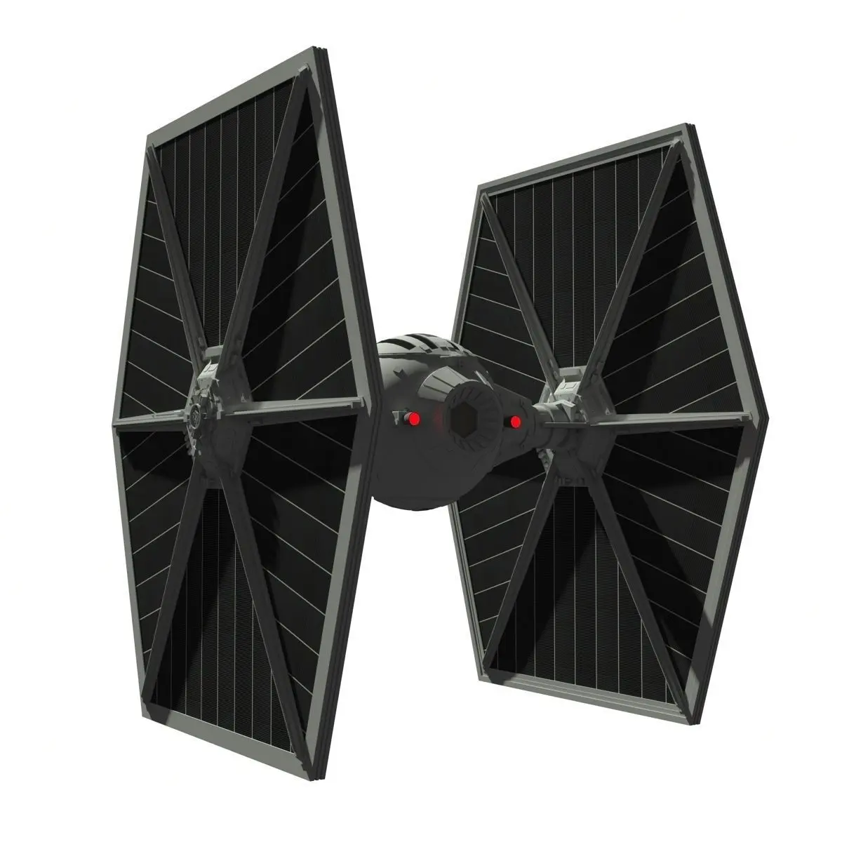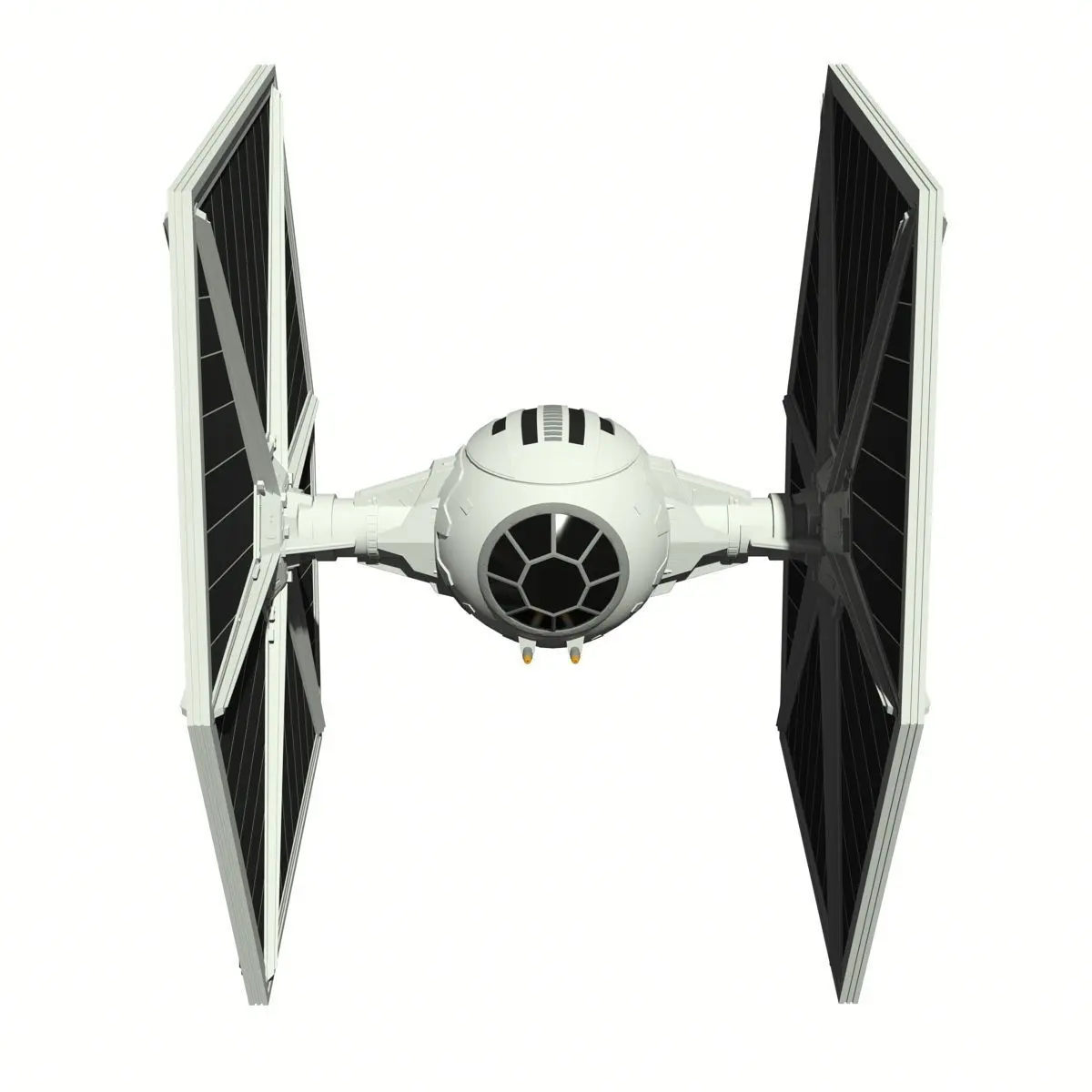 A model of the TIE (Twin Ion Engines) Fighter from the Star Wars universe. This starfighter is an imperial ship used by the Imperial Galactic Navy.