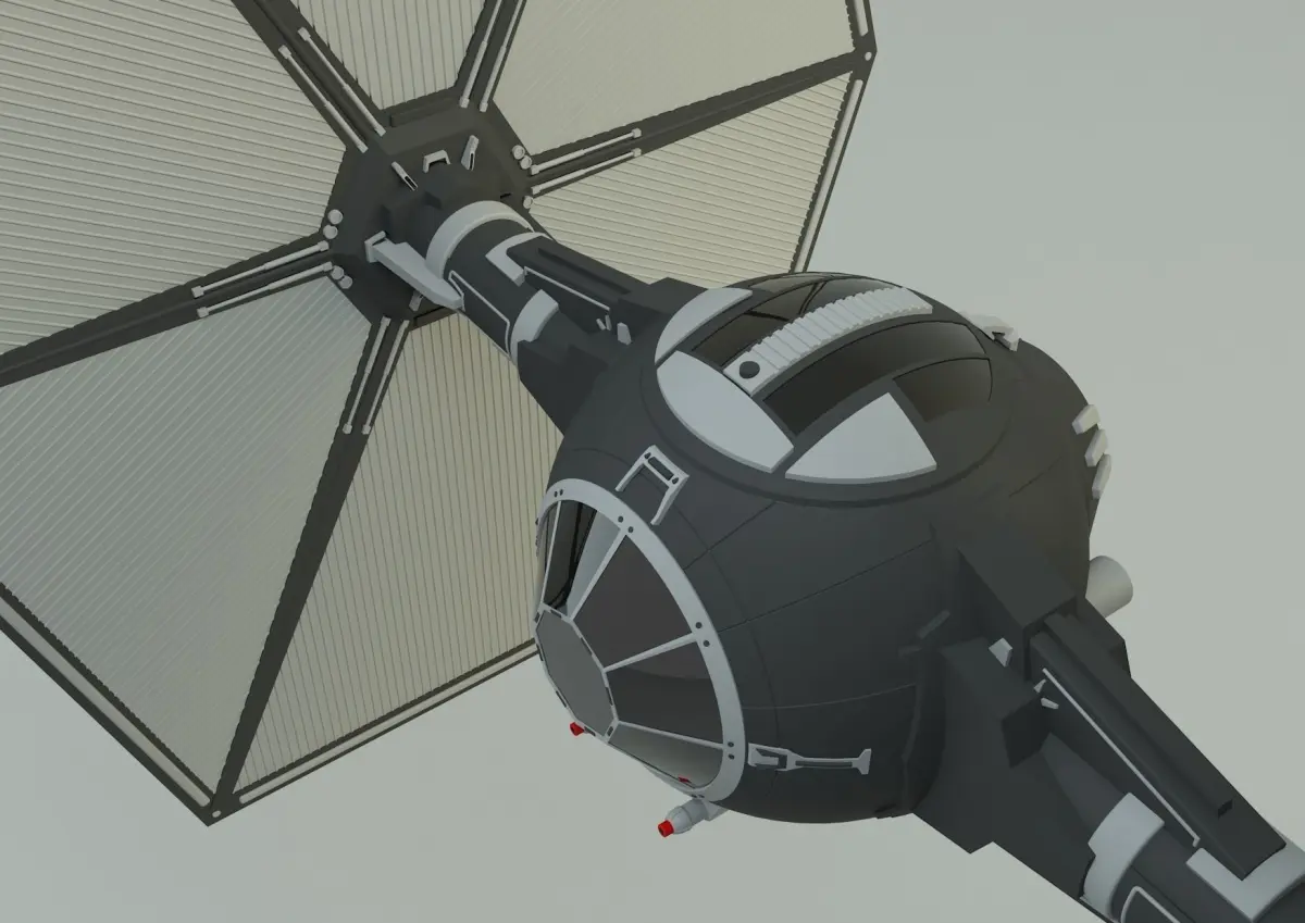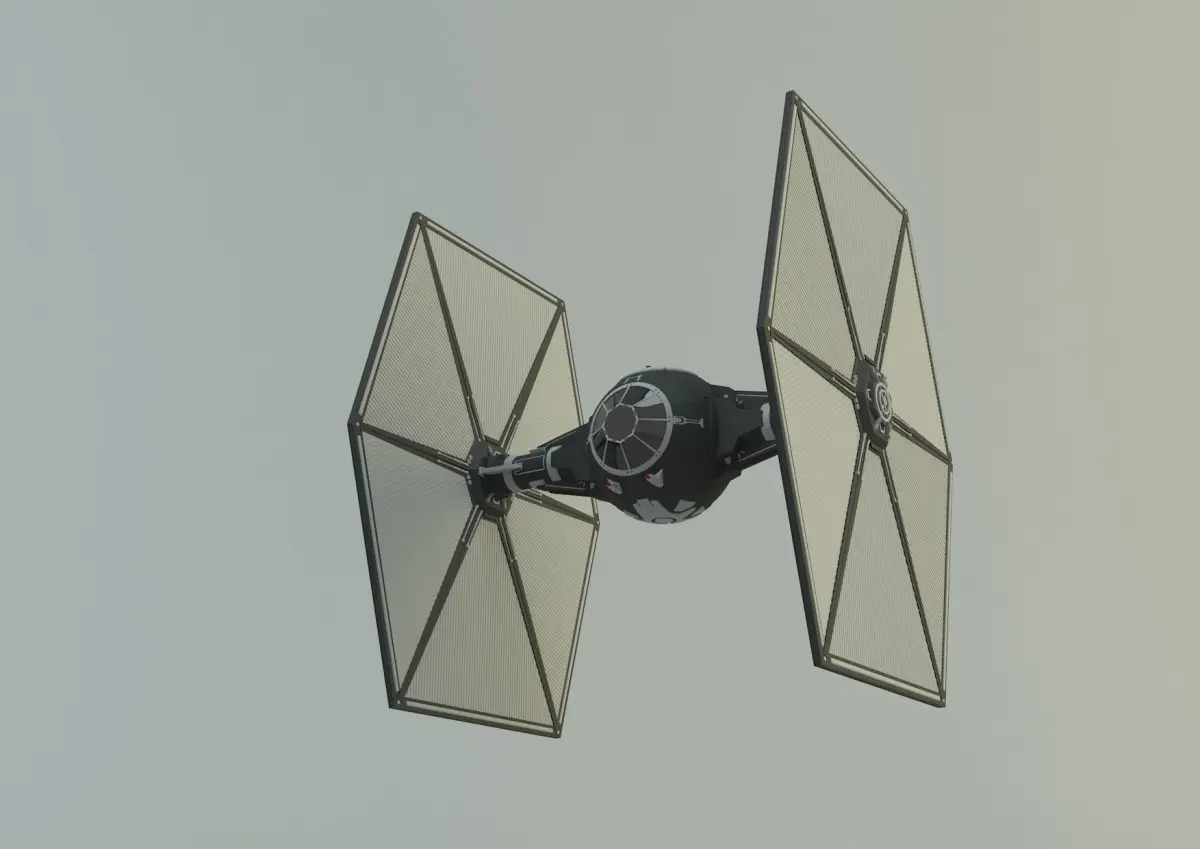 TIE-fighter spacecraft. Created in 3ds max 2015. vray 3.00 rendered. There is no render scene. There is a 3ds max file. The materials have different formats. (3ds, fbx,obj) no animation. No interior design.