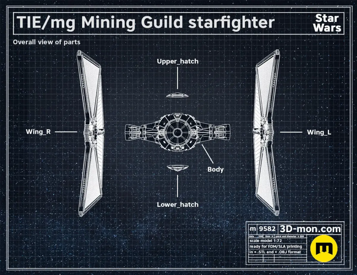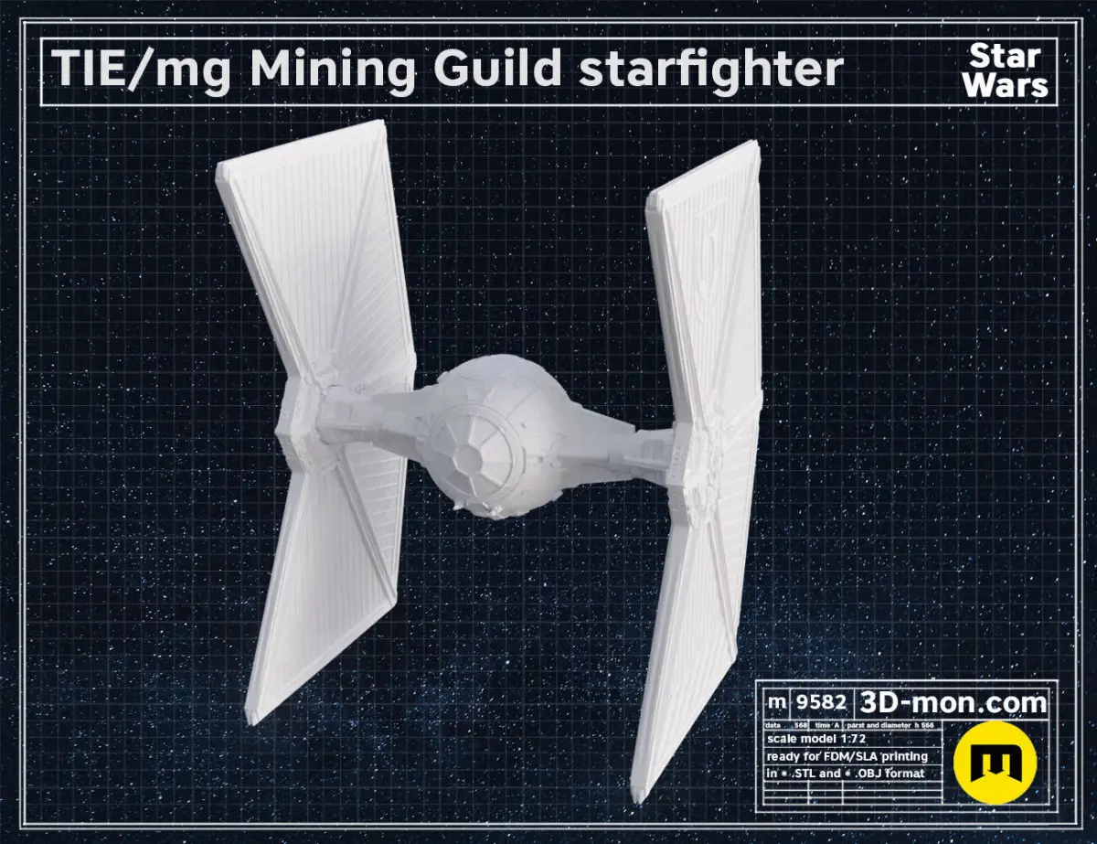 This is a digital 3D printable model of TIE/mg Mining Guild starfighter from the Star Wars Universe.