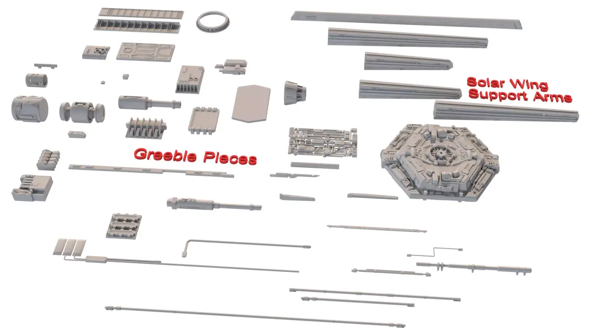 - TIE Starfighter style greebles, including pipes, hoses, vents, hull panels, support objects and more