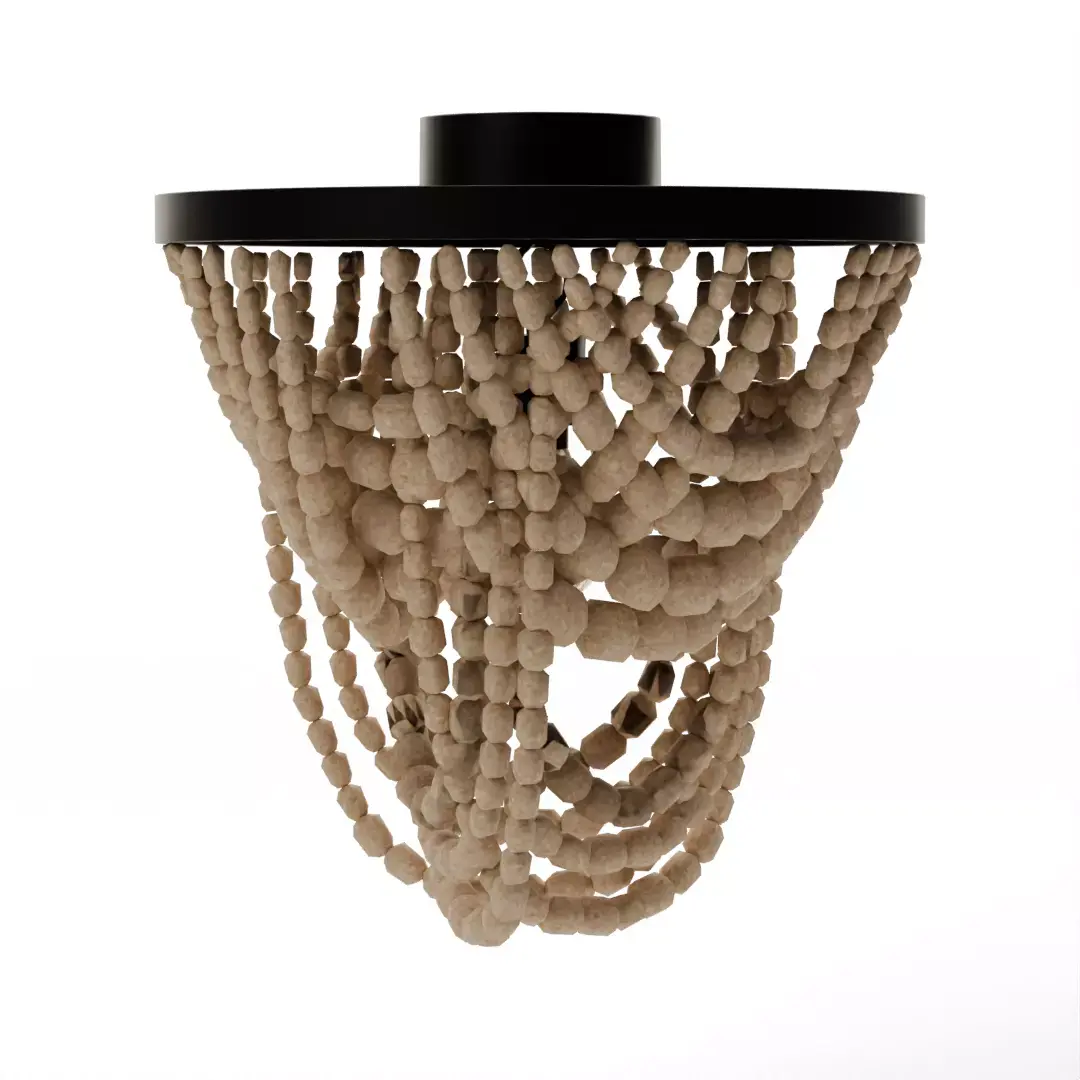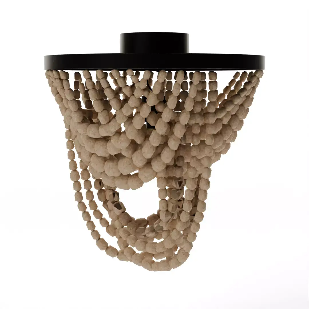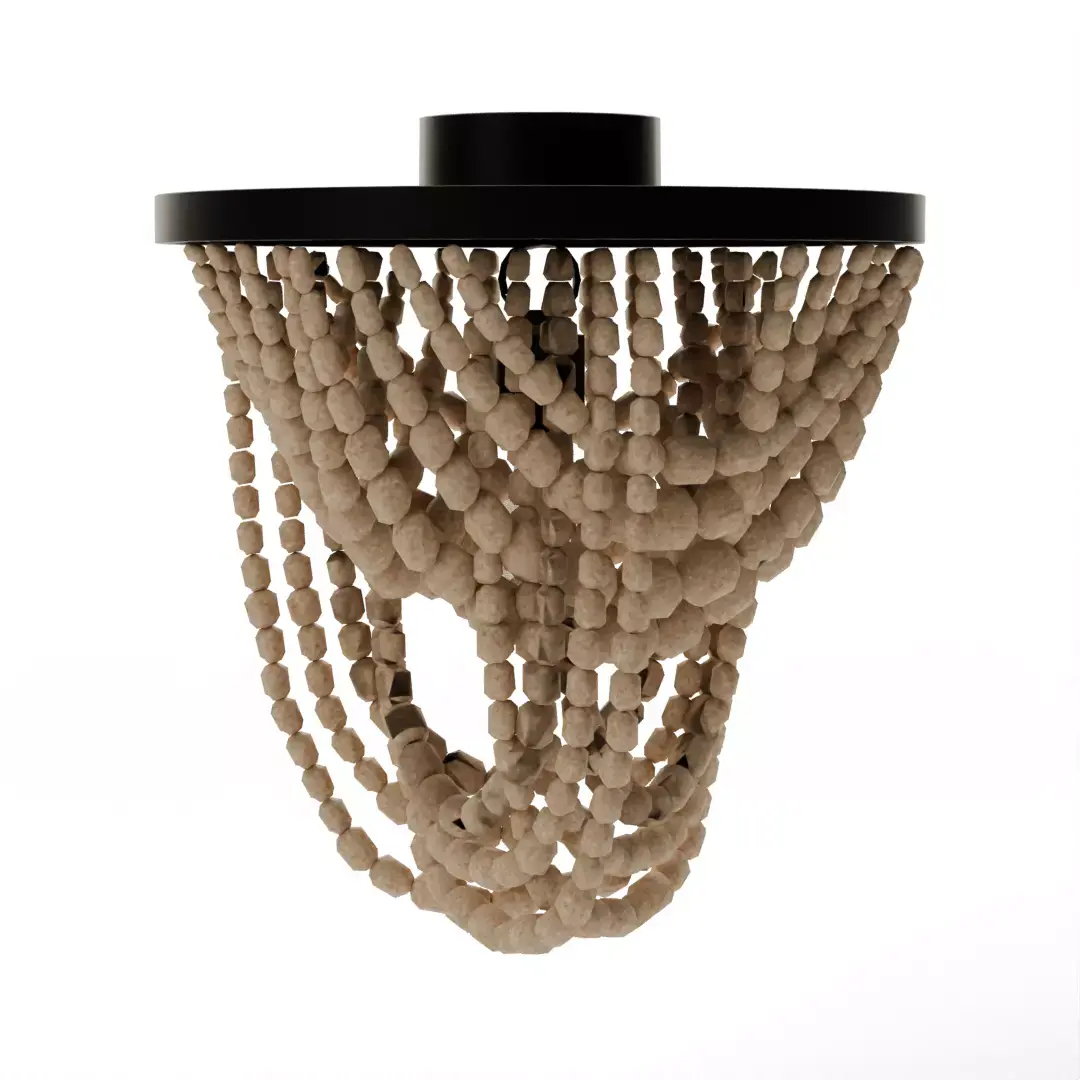 Infuse your ceiling planes with organic texture and soft, bohemian elegance using the Tiered Wood Bead Semi-Flush Mount. This high-fidelity 3D model features cascading swags of hand-strung Natural Wood Beads arranged in a multi-tiered architectural silhouette. Designed to bridge the gap between a classic chandelier and a space-saving flush mount, this asset is perfect for low-to-medium ceiling heights in nurseries, coastal bedrooms, or entryways. The model captures the complex interplay of light as it filters through the beaded tiers, casting a warm, dappled lattice shadow pattern across your 3D environment.