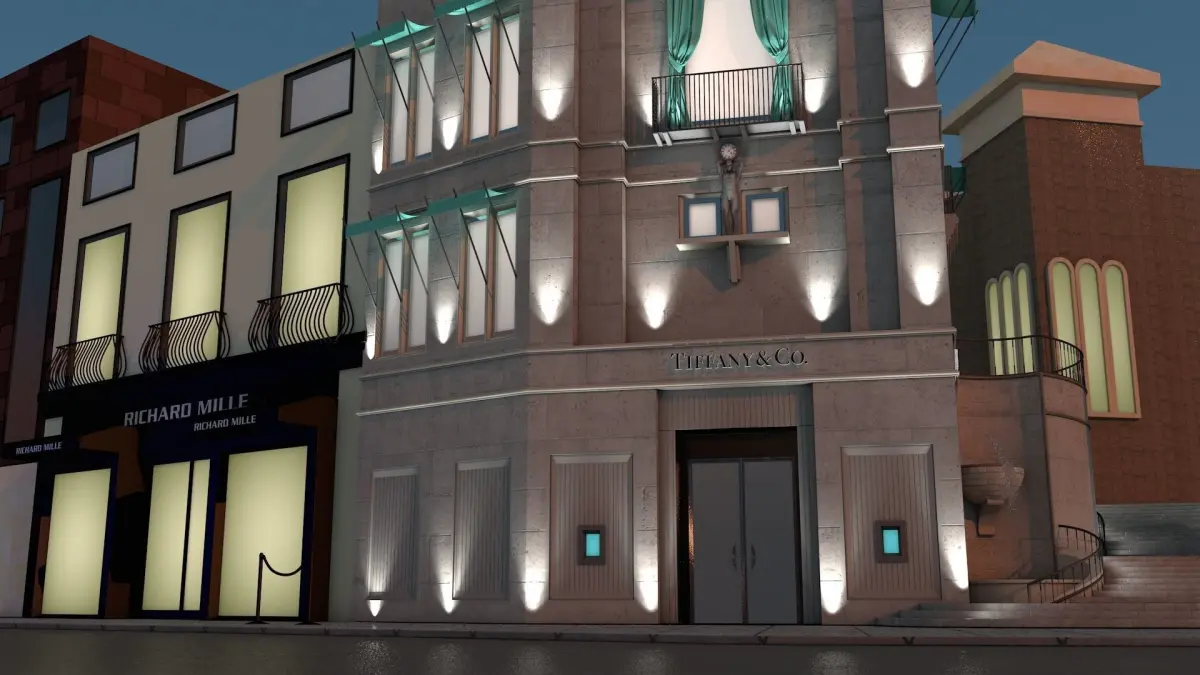 Tiffany Jewlers building in Los Angeles, California.Surrounding buildings included.Great for outdoor scenes and architectural visualization.Ready to drop into scene.Real-world scale.Clean topology.Modeled and rendered in Cinema 4D.Medium polygon count.Cinema 4D Procedural materials and Substance files included.Studio and lighting not included.Exported Formats: FBX, 3DS, OBJ, DAE.building, structure, facade, construction, mall, shopping, center, town, city, retail, exterior, street, sidewalk, store, storefront, window, entry