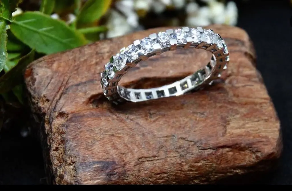 *Tiffany Style Diamond Ring. Band ring with a full circle of round diamonds. *