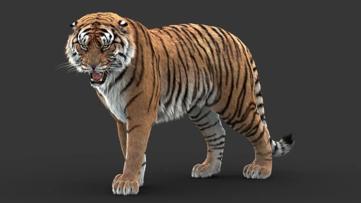High Detailed Photorealistic Tiger; UVunwrapped and smoothable, made with Maya. Shave and a haircut for hair.