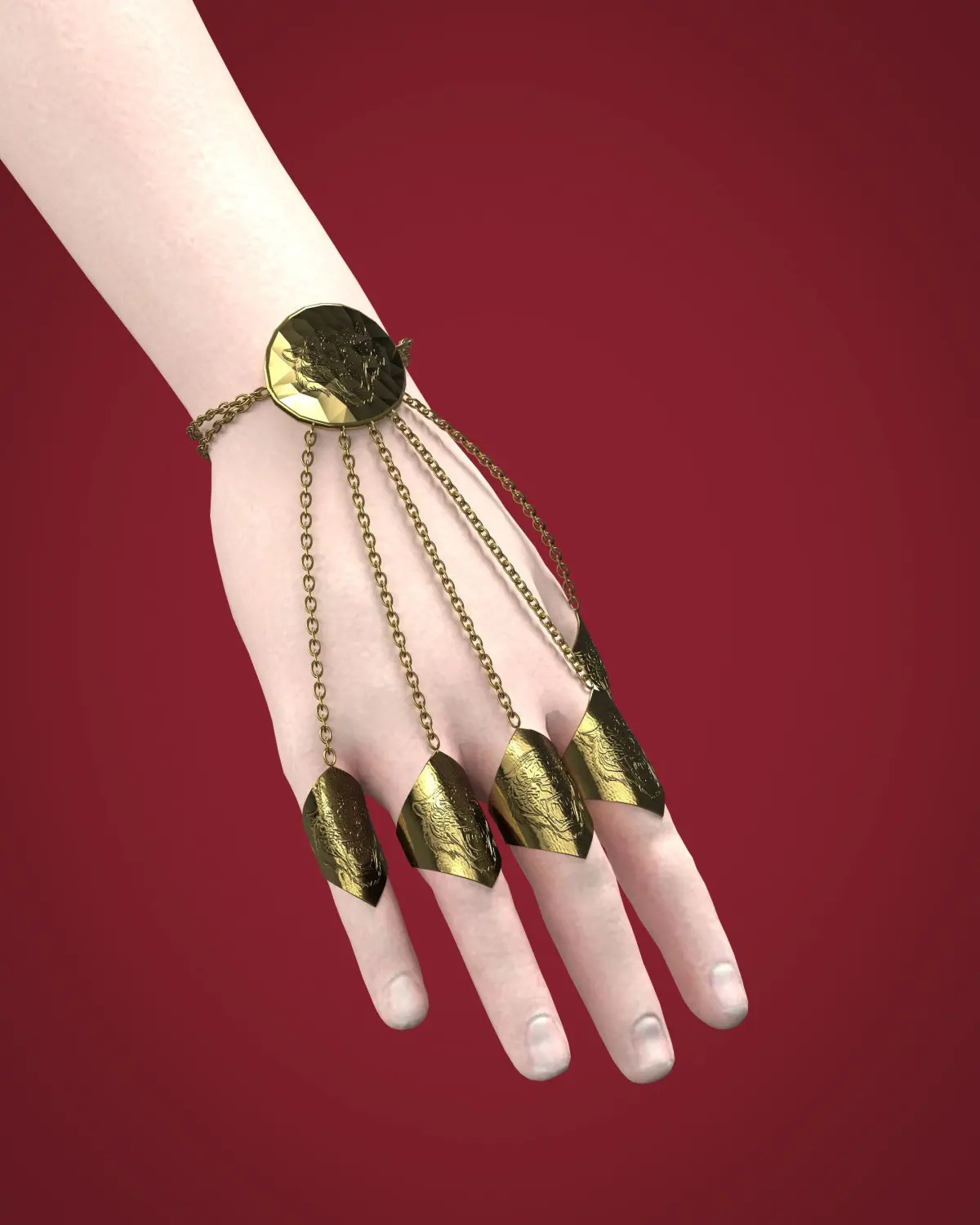 Tiger Embossed Metal Rings and Bracelet 3D model