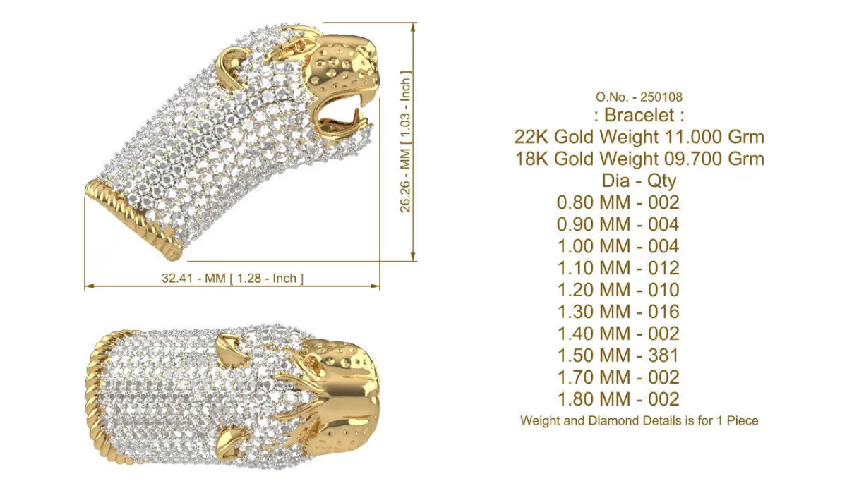 Please note that the weight and the diamond details is provided for one piece.