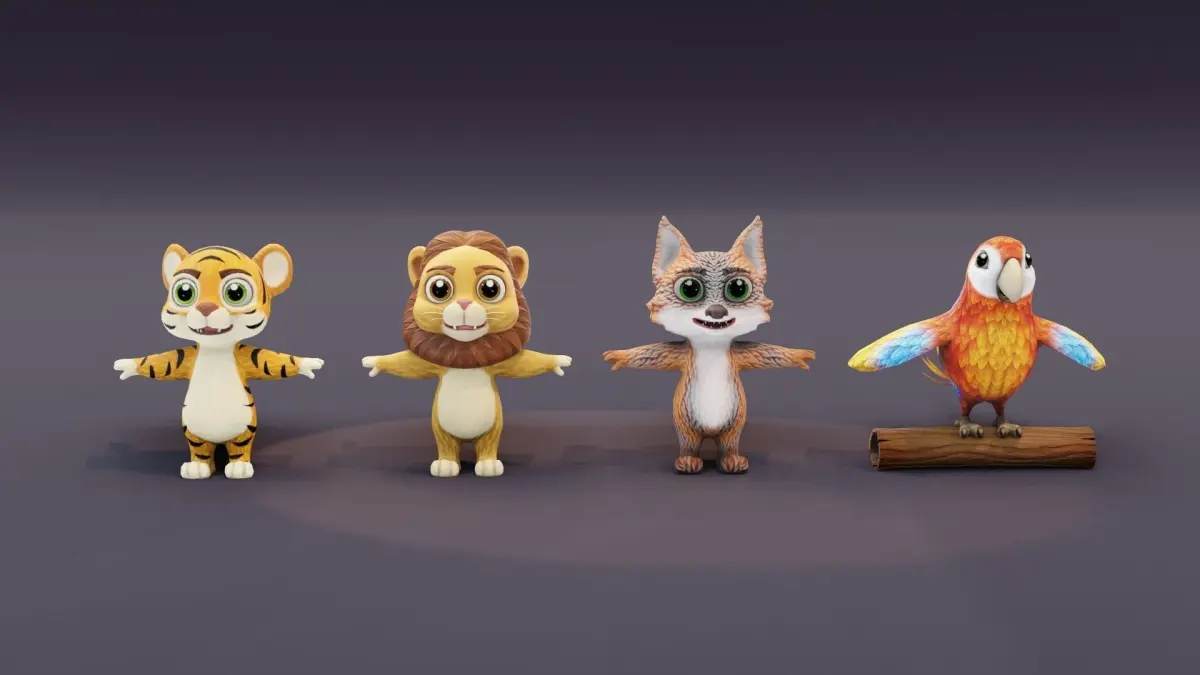 Animated Cartoon Animals 3D Models Pack #5 consists of 4 models (all models share the same style and have similar polycount):