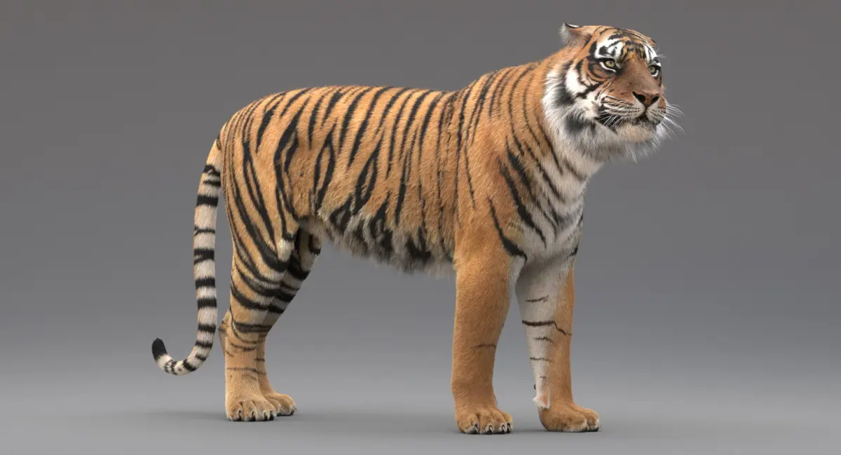Tiger model mapped using multitile textures and has: