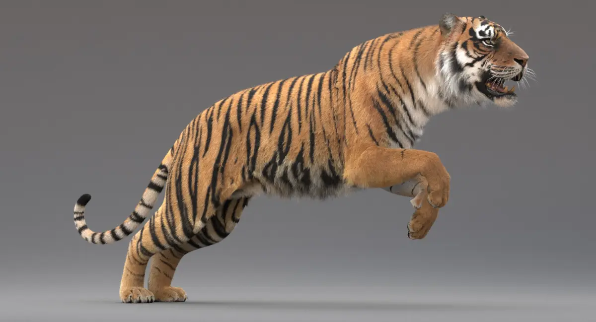 High quality realistic and rigged Tiger model with fur, it has vray sss material with high resolution multitile textures. Tiger model has clean topology and good in one iteration of smoothing.