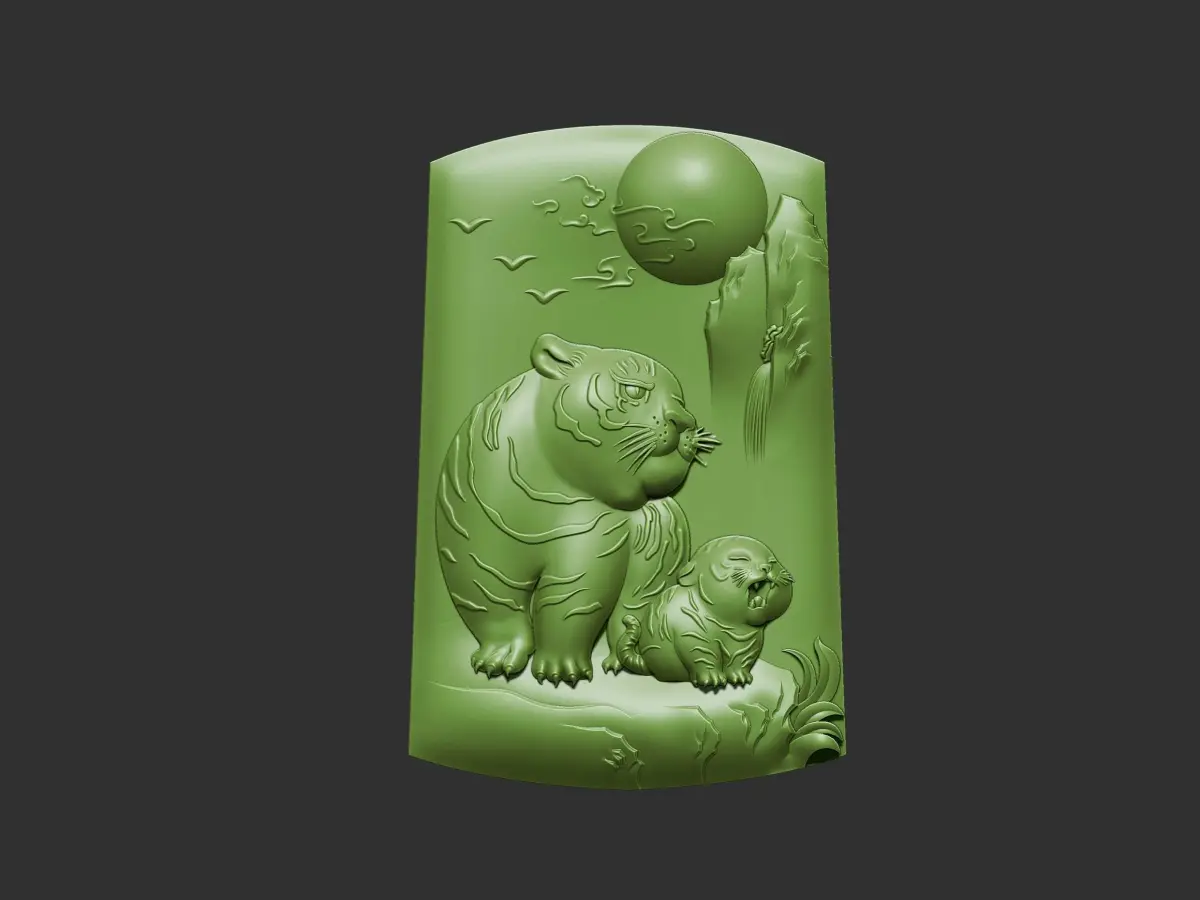 3d model of bas-relief of two cute tigers ready for CNC Router Carving or 3d printer.OBJ,STL format.