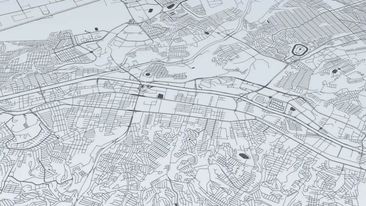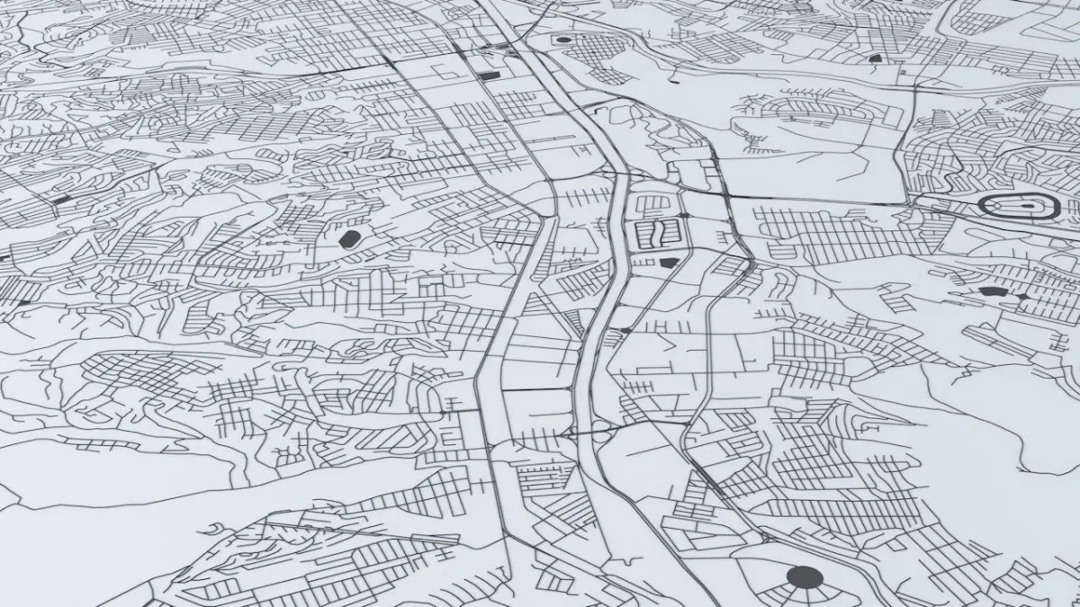 - the model is positioned on a flat surface (road network is on the “floor” - no elevation data included)