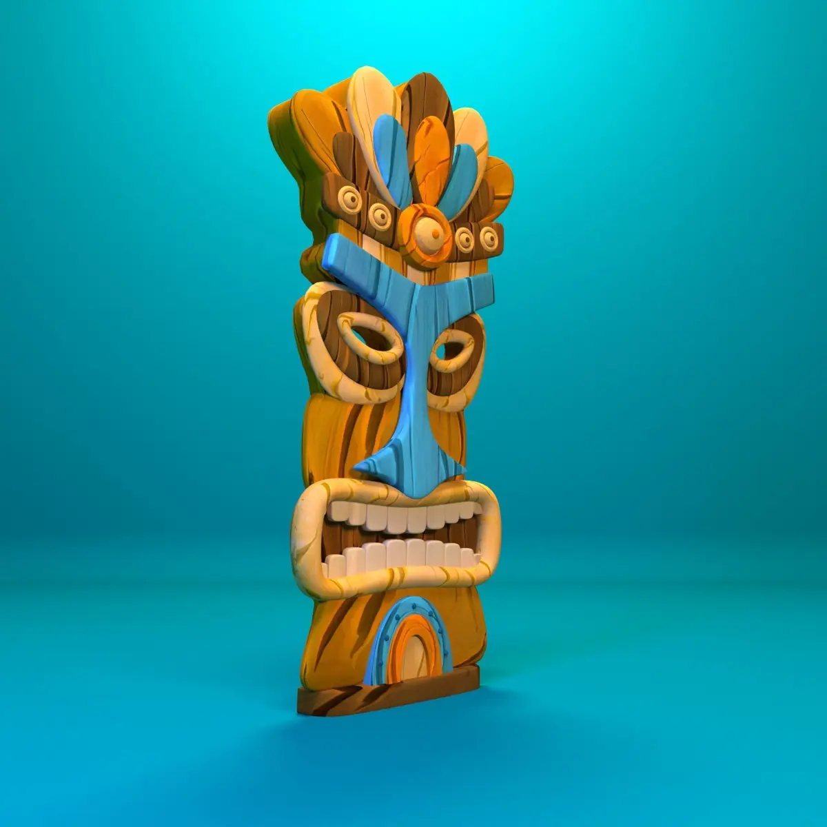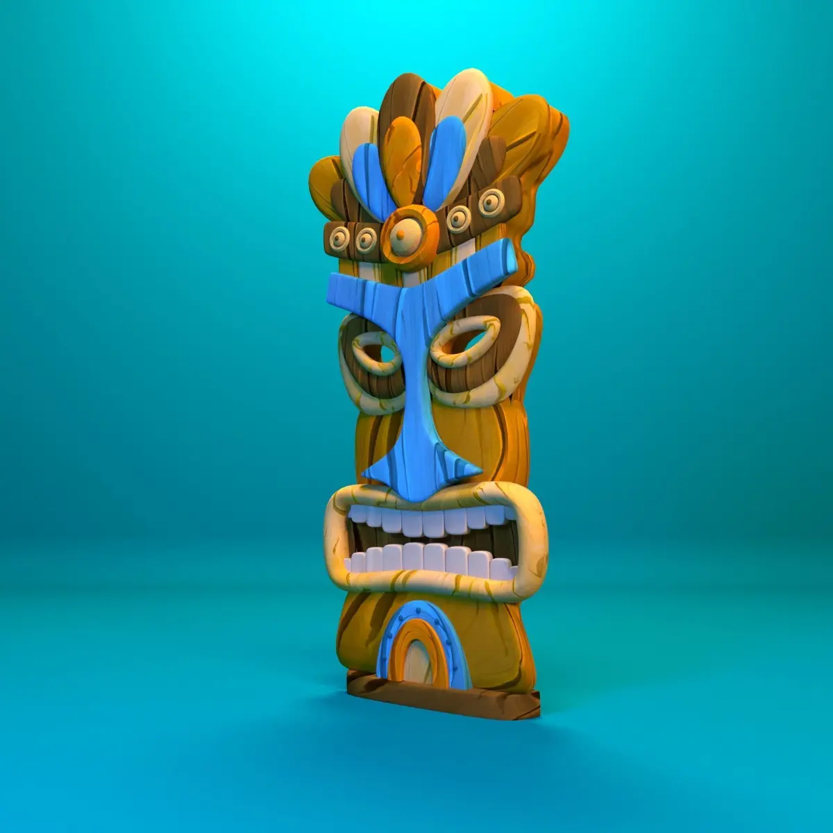 3d model of beatiful wooden Tiki mask in cartoon style. .max files contain materials and render settings. Textures are also attached.