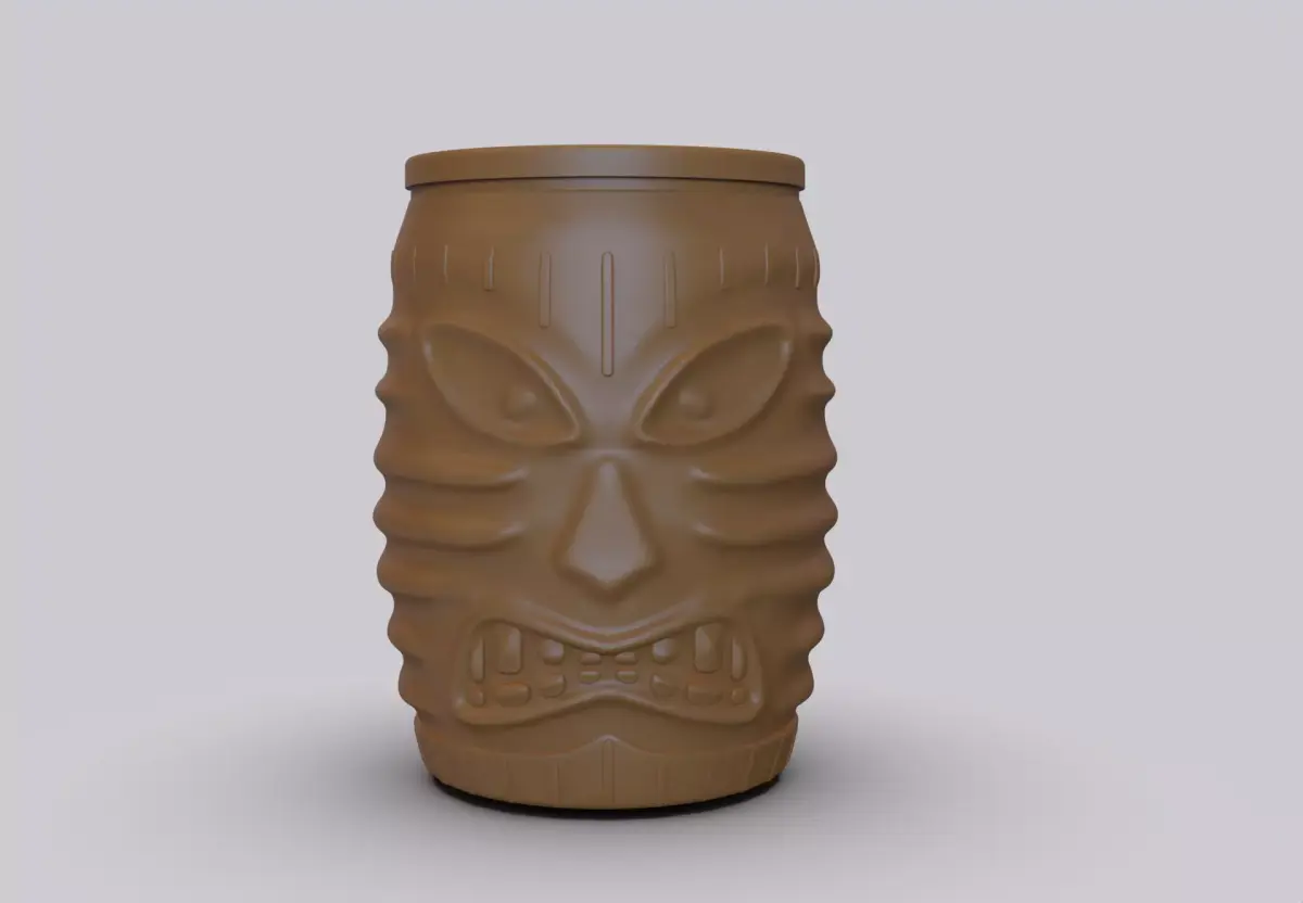 Ready-to-print 3D model of an exotic Tikki glass. This design captures the authentic spirit of Polynesian Tiki culture, featuring intricate tribal patterns and a robust, iconic form that is both a functional drinkware piece and a striking decorative object.