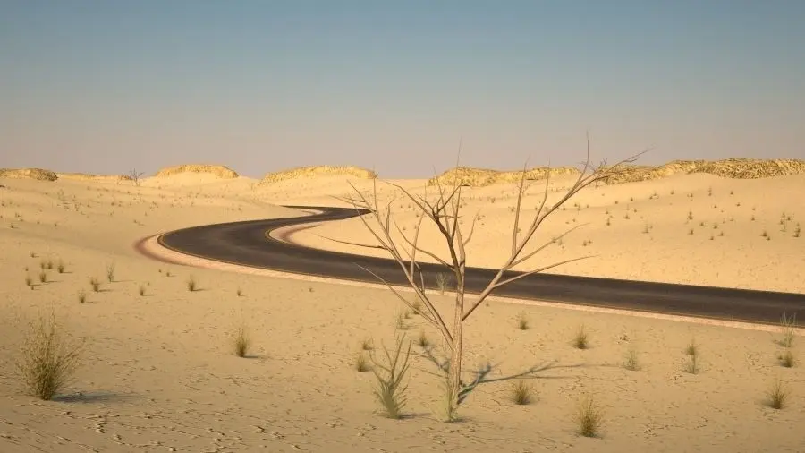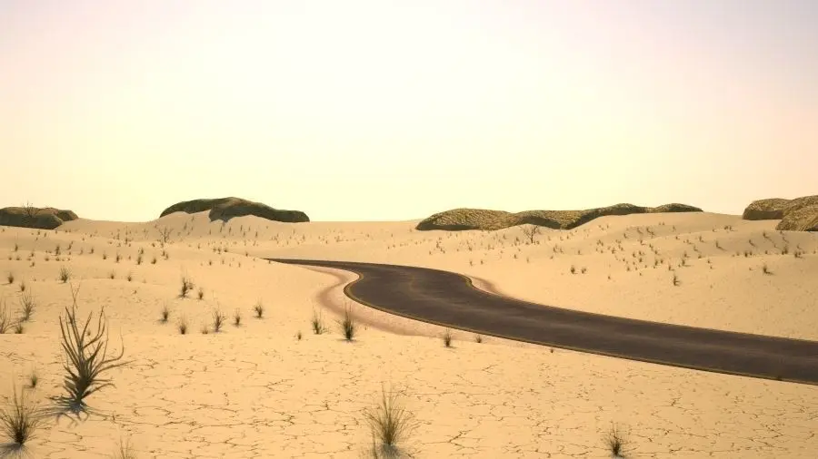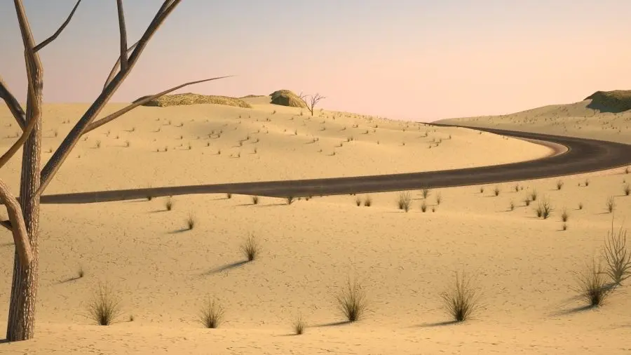 3d model of tileable desert road, .rps file render preset,materials, textures and maps included.Everything in file objects,lights and render settings is prepared to render - see preview pictures.