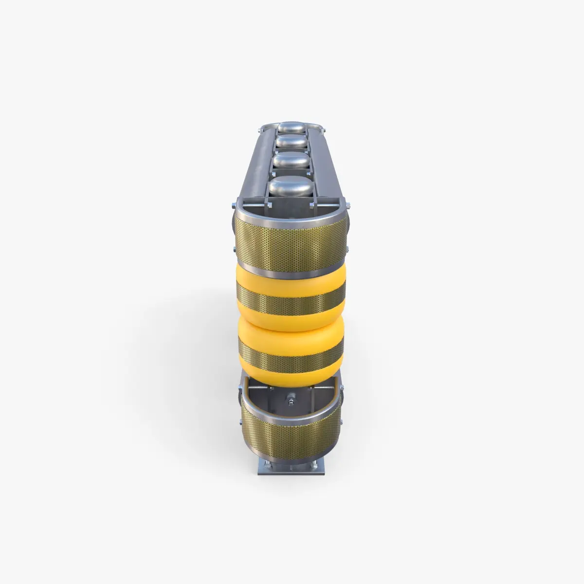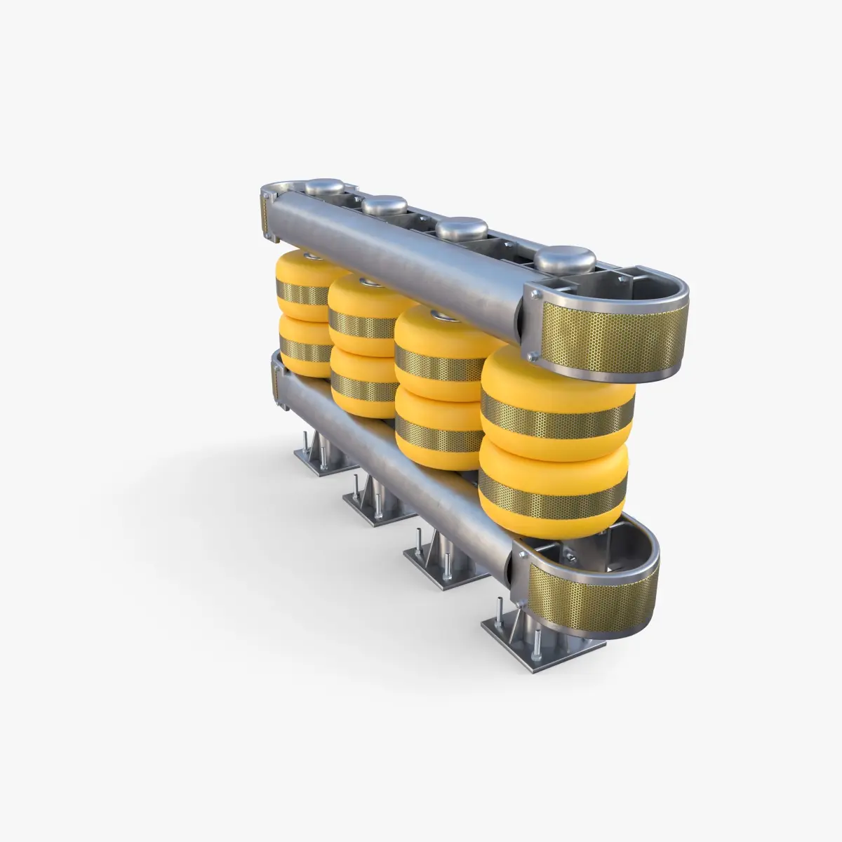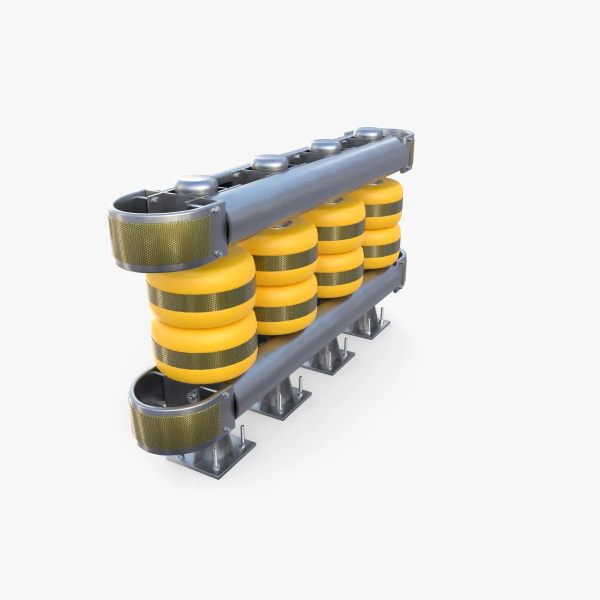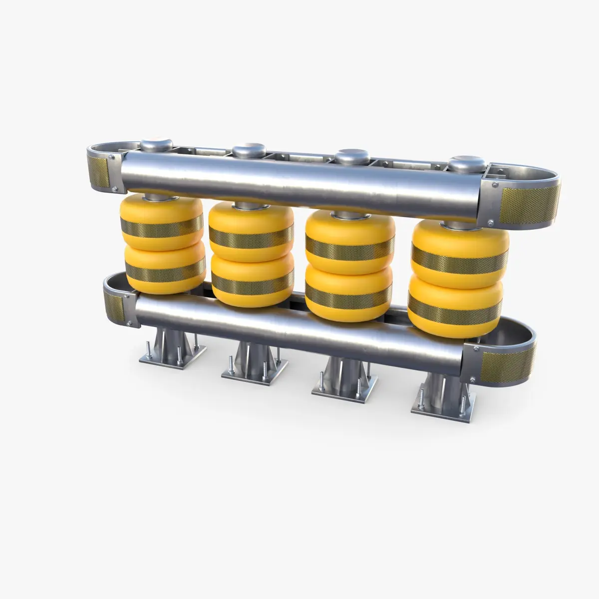 Tileable PBR Rolling traffic barrier 3d model rendered with Cycles in Blender, as per seen on attached images. The model consists of 3 separate objects: two separate end pieces and one tileable middle piece, allowing to make the required length of the barrier as needed.