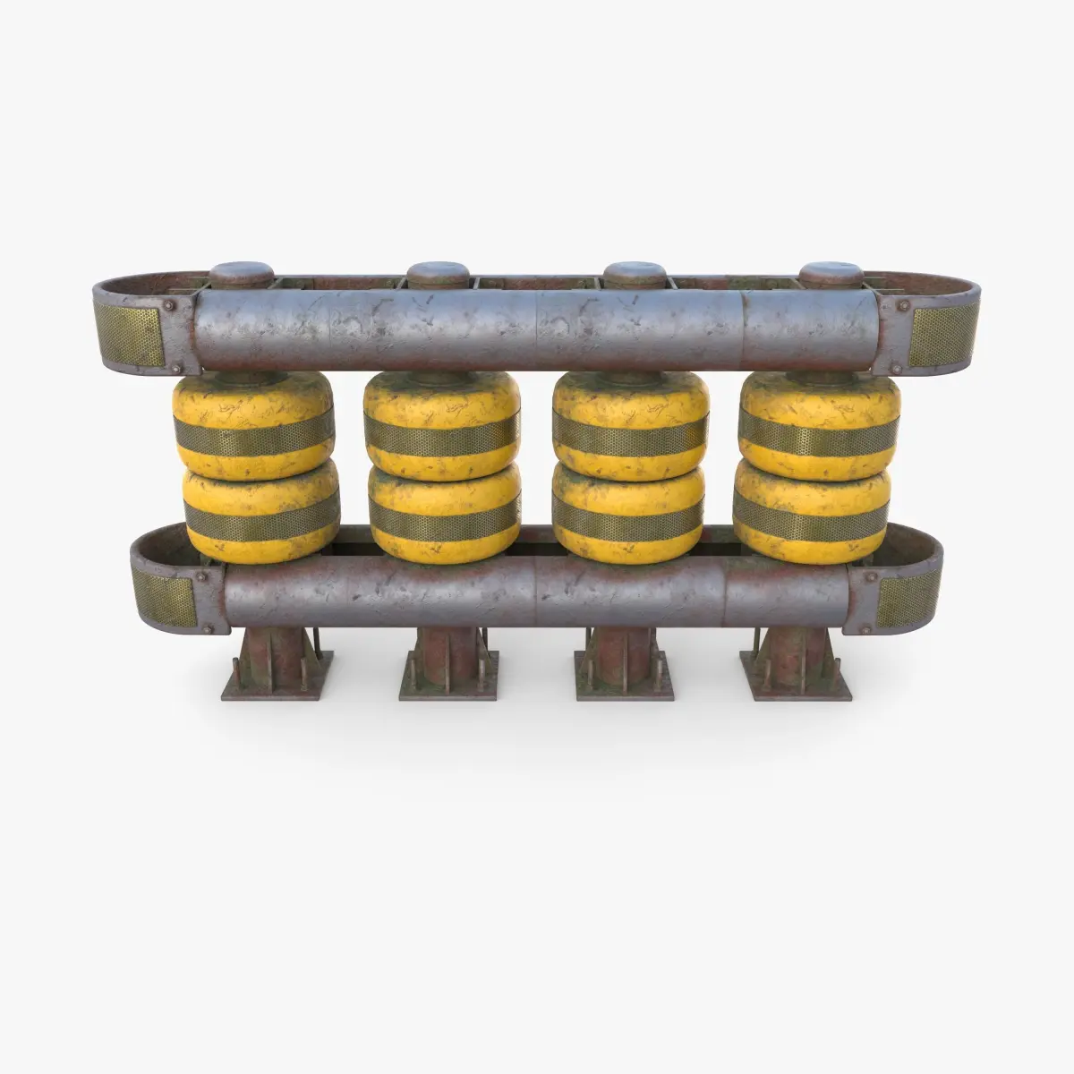 Tileable PBR Rolling traffic barrier 3d model rendered with Cycles in Blender, as per seen on attached images. The model consists of 3 separate objects: two separate end pieces and one tileable middle piece, allowing to make the required length of the barrier as needed.