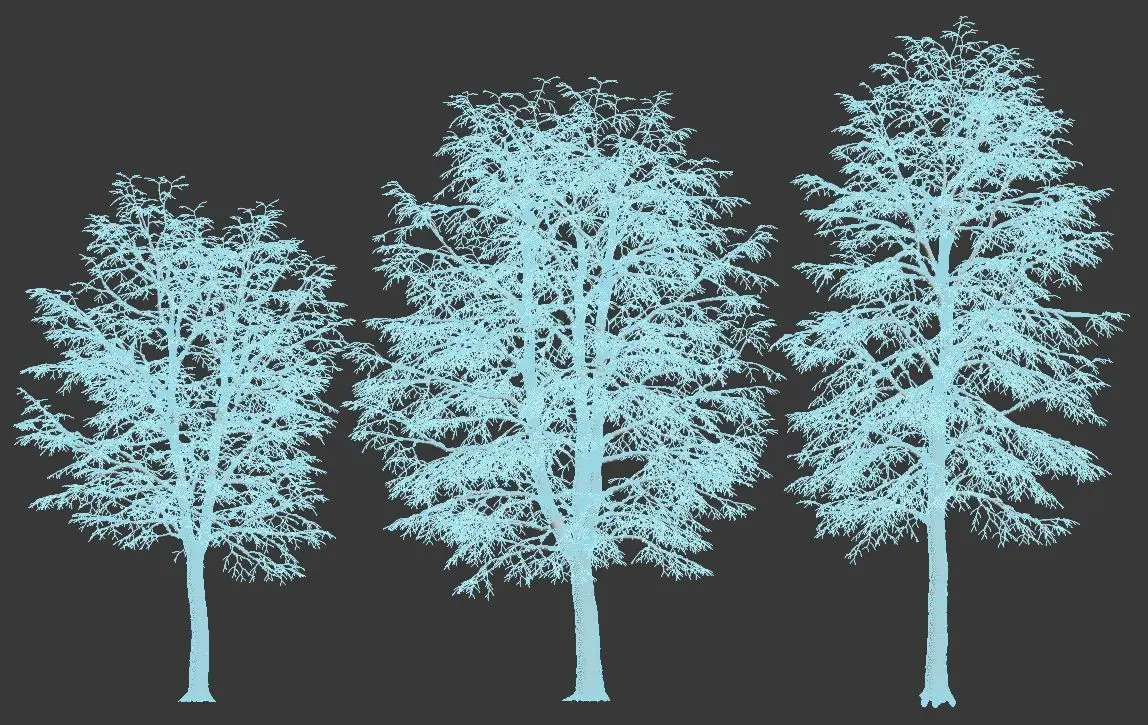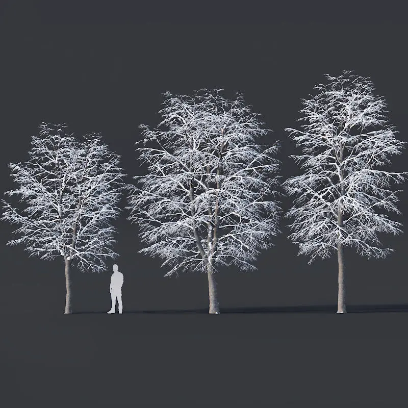 This collection gives you 3 adult tilia trees covered by snow. 7-9m height. Well optimized for distant and closeup views.
