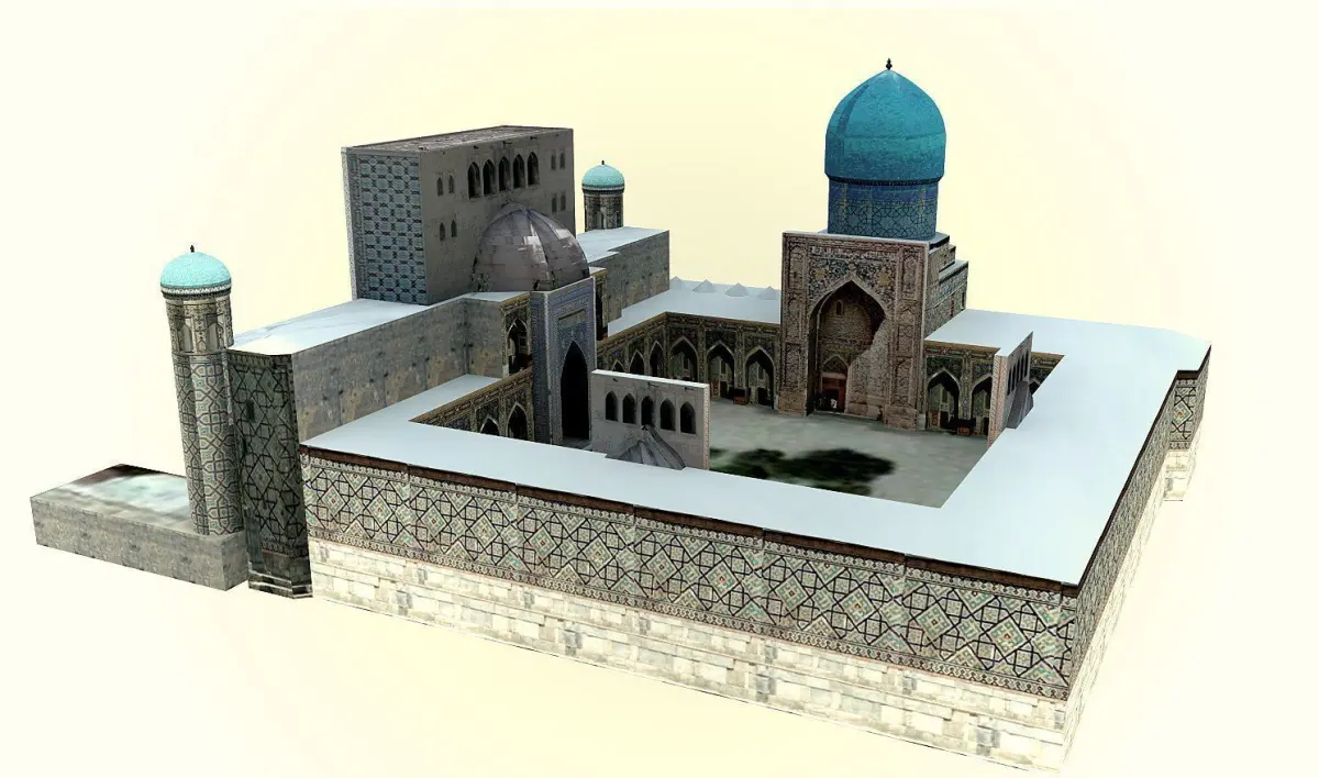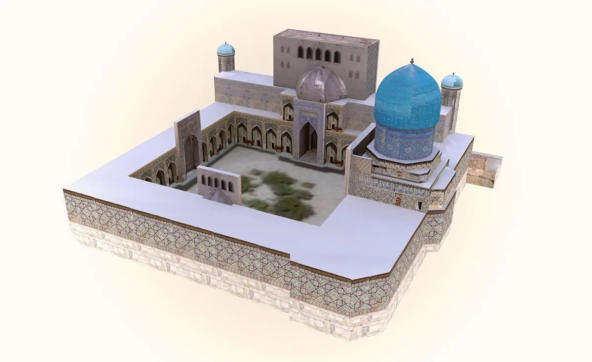 The Tilla Kari madrasa was commissioned a decade after the adjacent Shir Dar madrasa (1619-1636) by the same patron, Shaybanid feudal general, Alchin Yalantush Bahadur between 1646-60.https://archnet.org/sites/2148