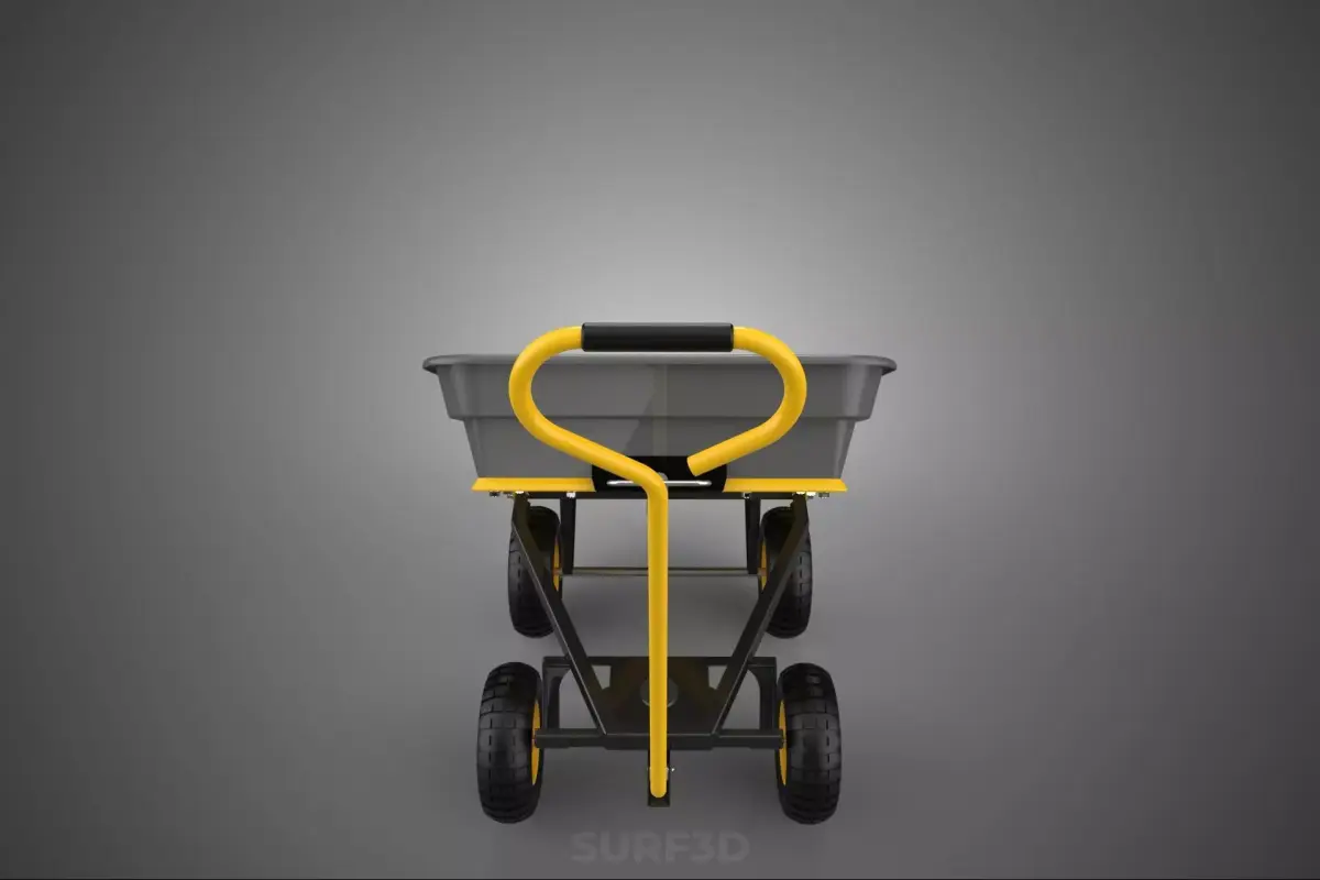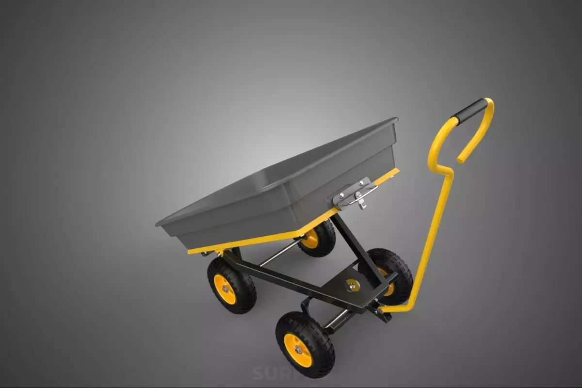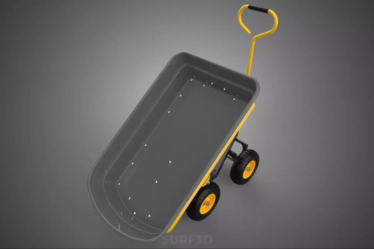 The cargo bed, variously described as a Bed, Deck, or Tub, typically presents as a molded, deep-sided trough or pan designed to securely contain loose or bulky items. This PP bed is commonly reinforced by a robust steel frame (often powder-coated for corrosion resistance) that provides structural integrity, supports the tilting mechanism, and houses the axle assemblies for the wheels.