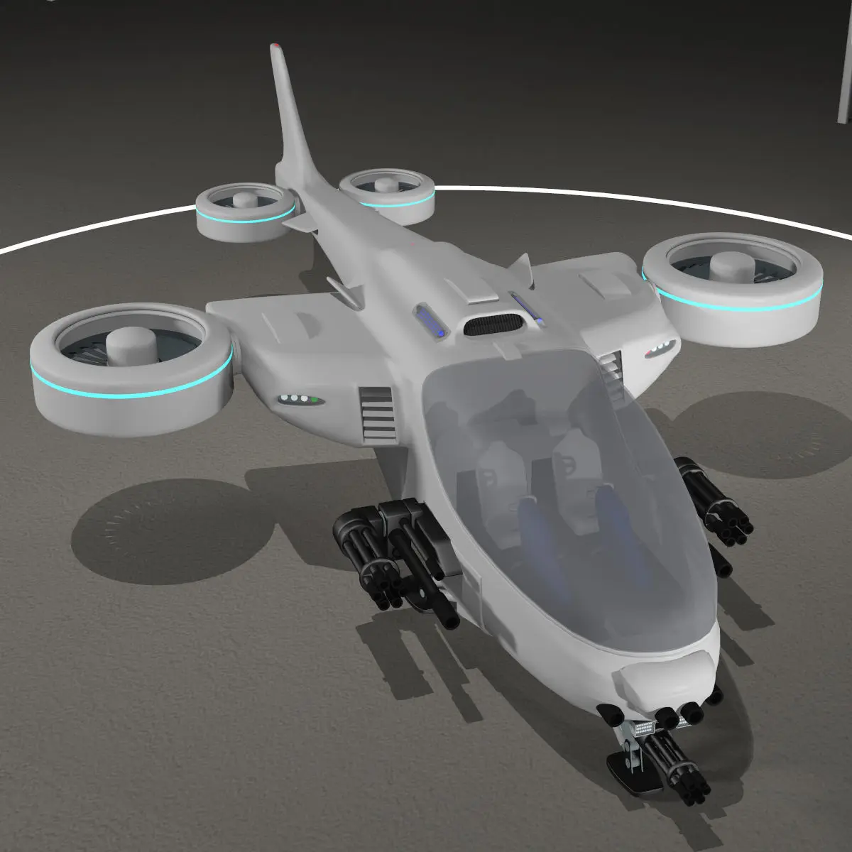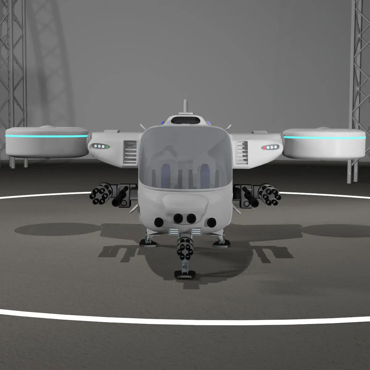 Multi-mission VTOL TiltRotor Quadcopter, aircraft 3d model. Includes 'Police' and 'Rescue' .jpg Texture maps.Guns and accessories can be removed if desired.
