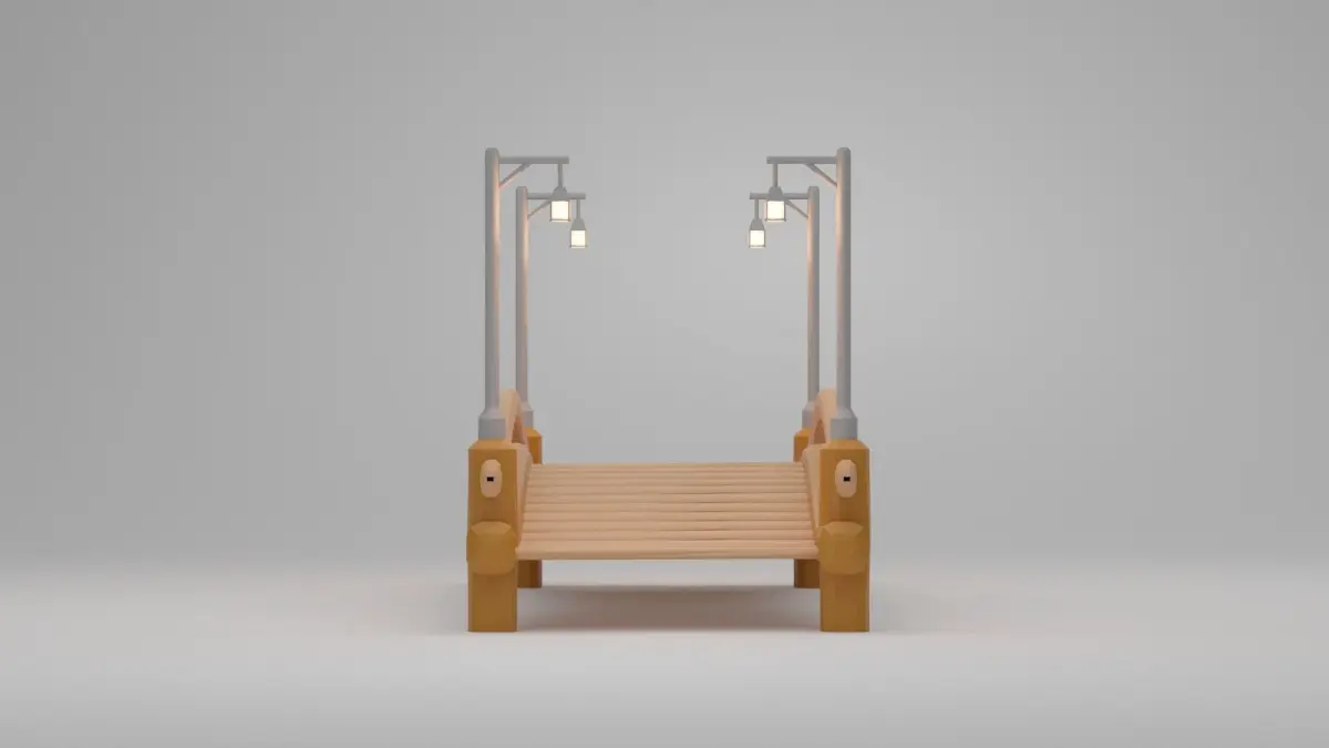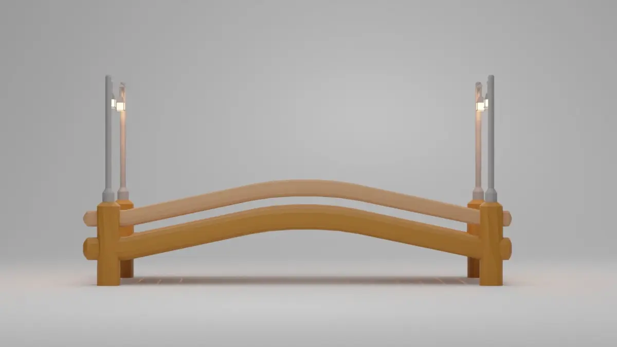 - The default dimensions of the Timber bridge model are 76 x 31 x 39 mm.