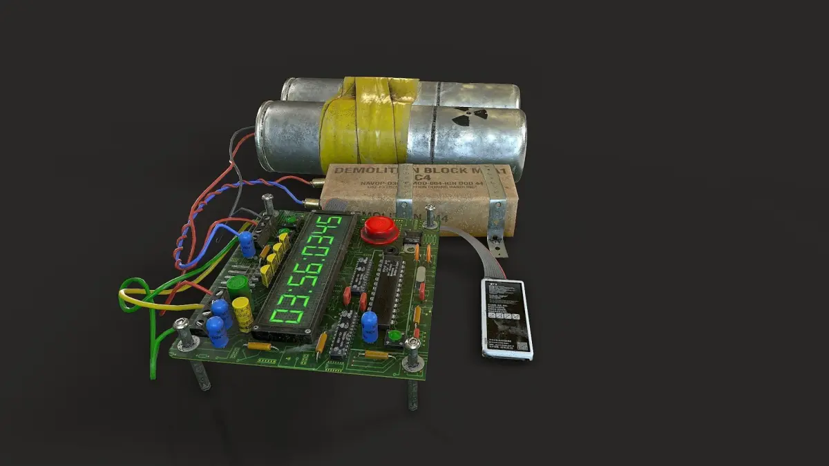 Timer Bomb C4 low poly model for pbr, textures 2k(albedo,metallic, roughness,ao,normal) format inlude: *fbx *obj *max